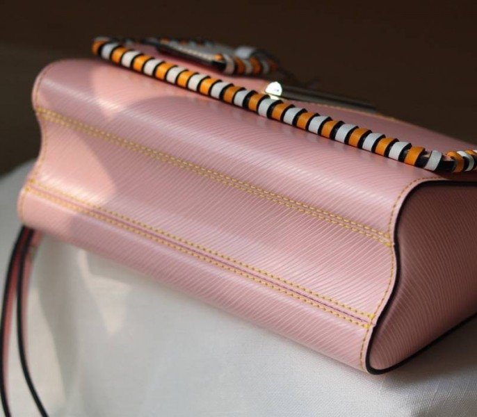 Louis Vuitton Epi Leather Twist MM Bag In Rose Bellerin Pink With Braided Edges Flap