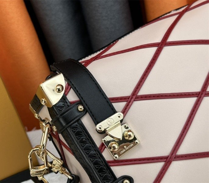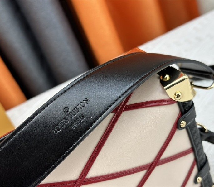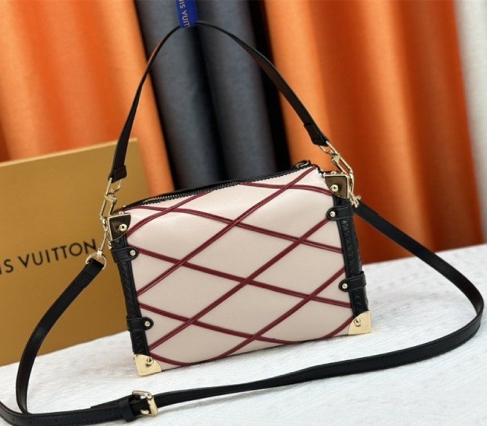 Louis Vuitton Malletage Leather Side Trunk MM In Beige And Red