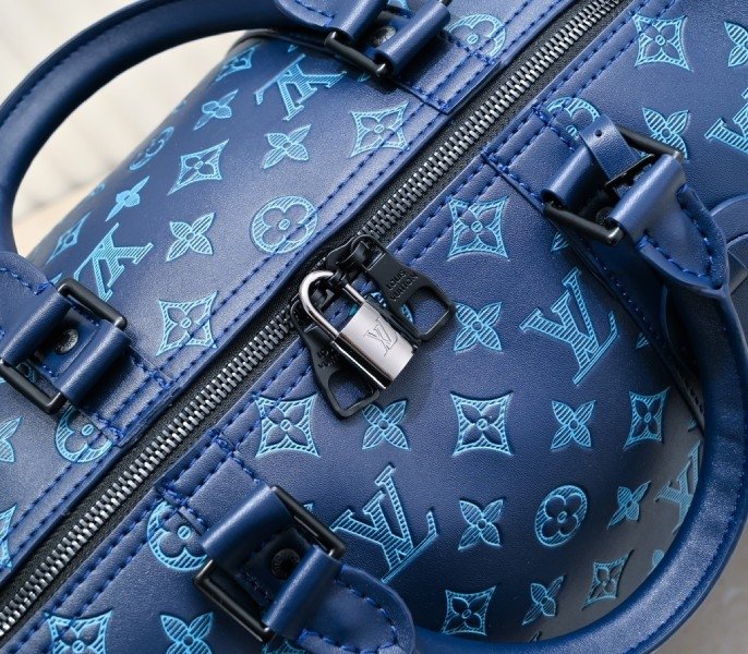 LV Monogram Shadow Keepall Bandouliere 50 In Navy River Blue