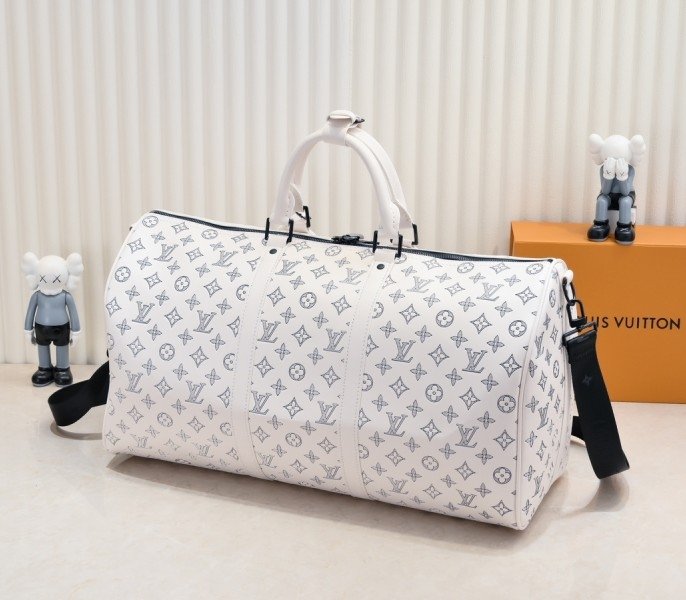 LV Monogram Shadow Keepall Bandouliere 50 In White