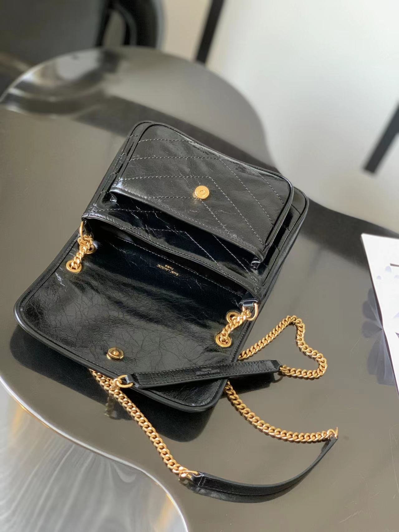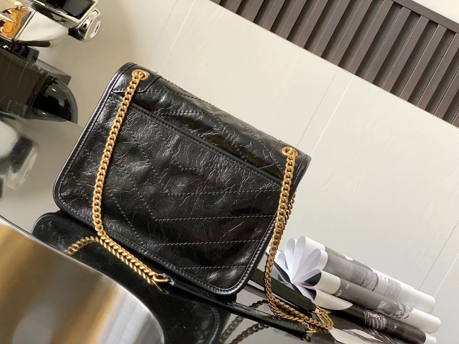 NIKI MEDIUM CHAIN BAG IN CRINKLED VINTAGE LEATHER