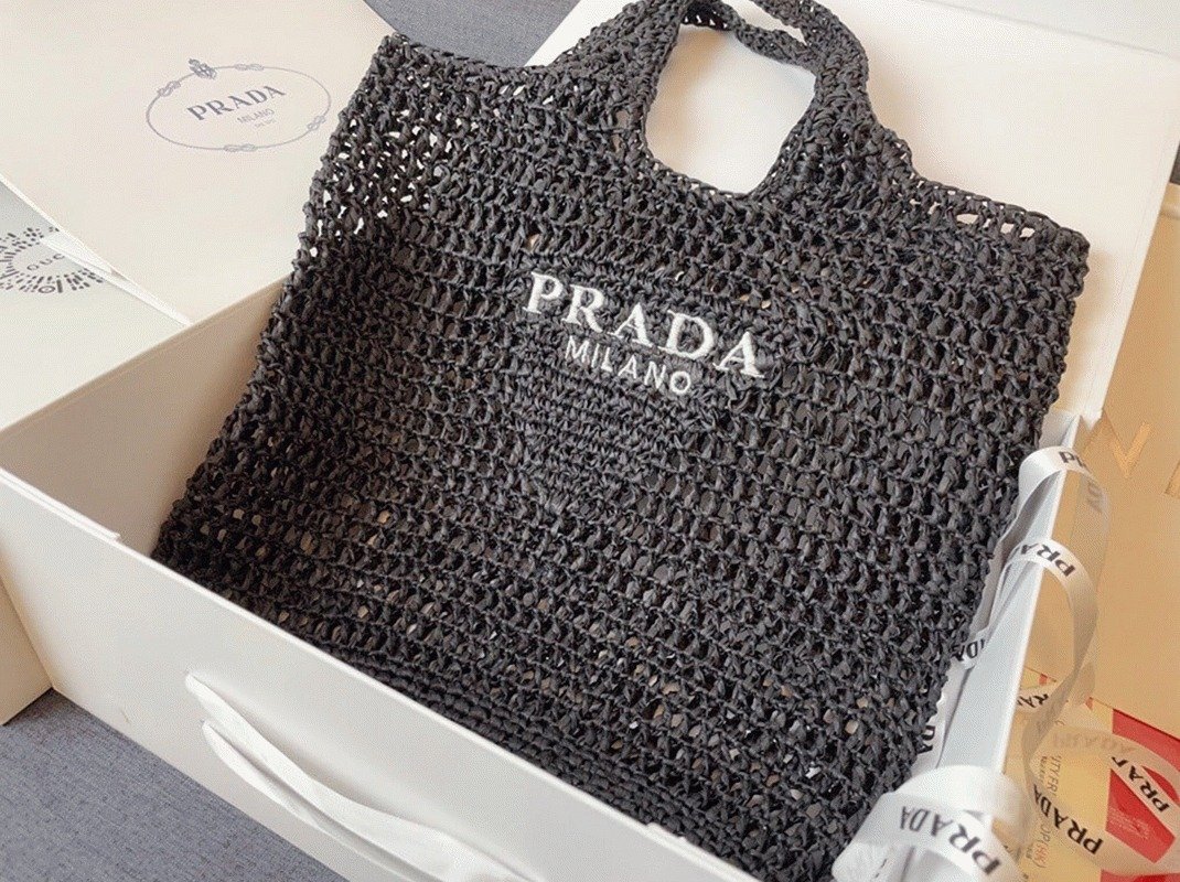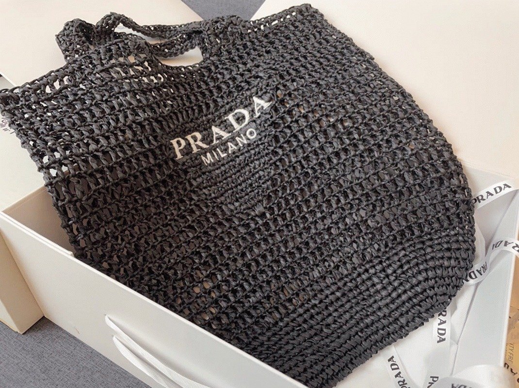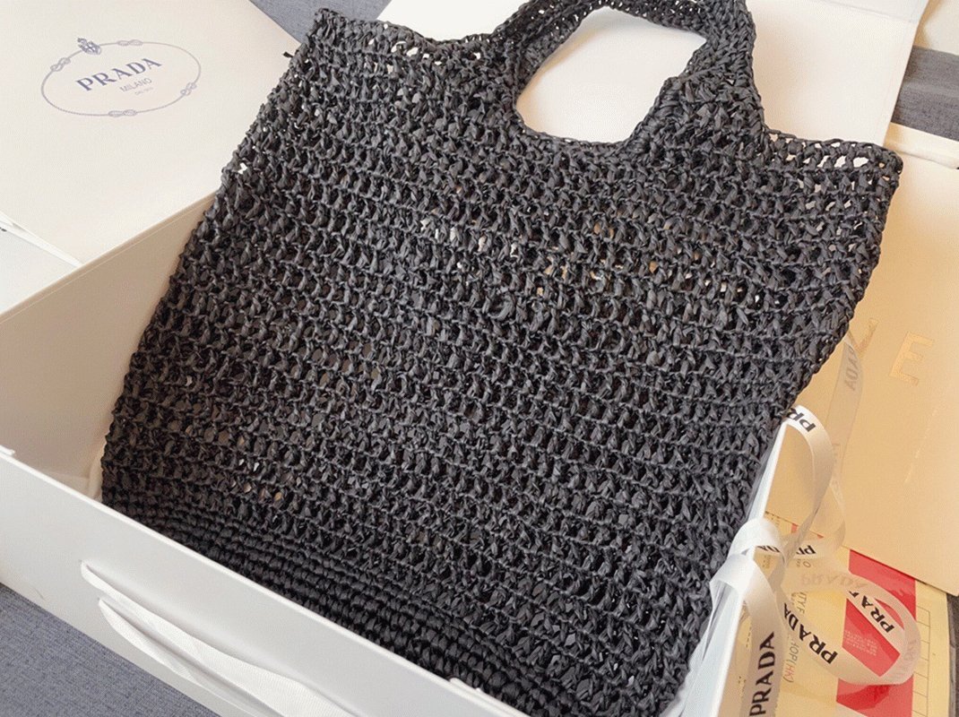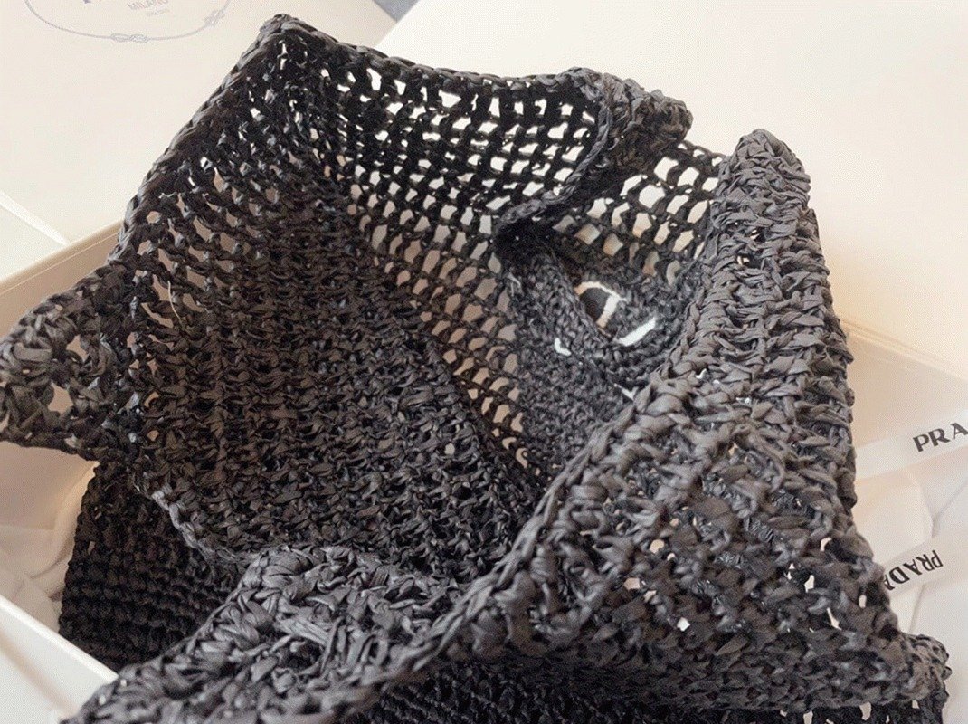 Prada Large Tote Bag Fake in Black Woven Raffia