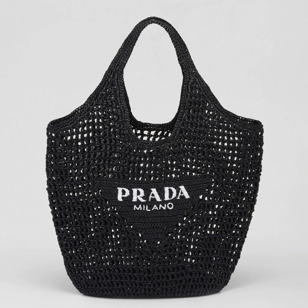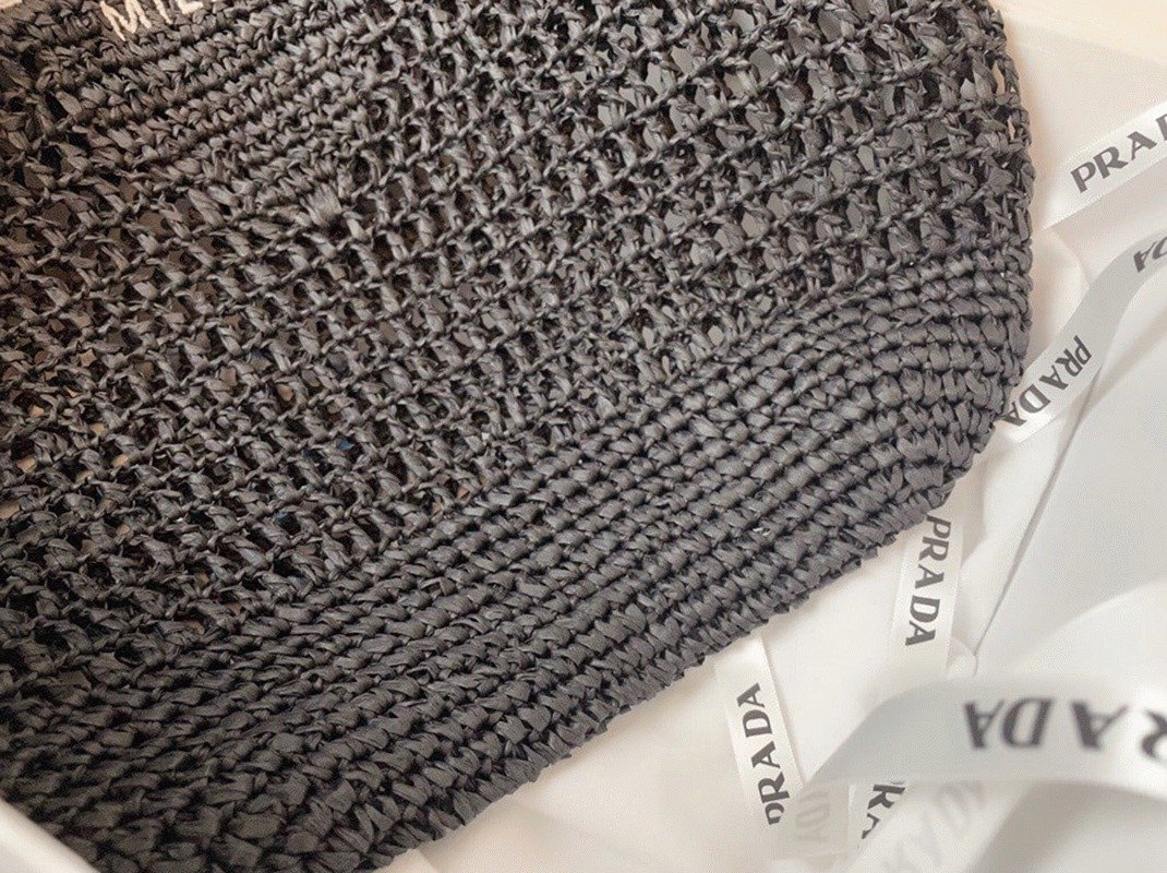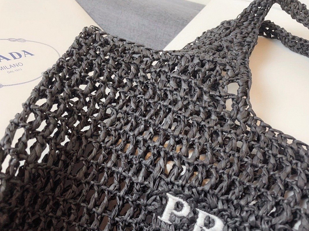 Prada Large Tote Bag Fake in Black Woven Raffia