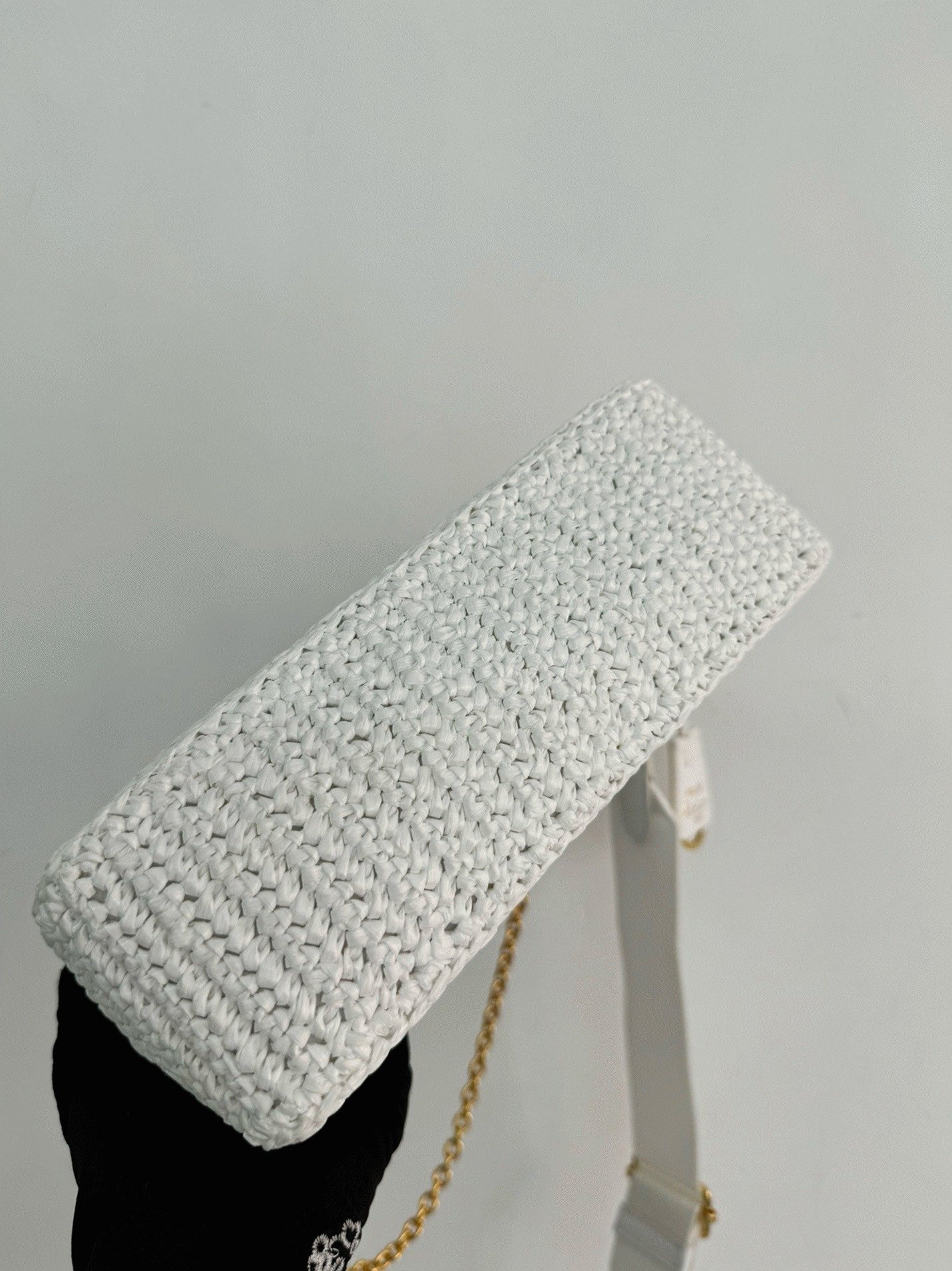 Features a removable raffia zipper pouch and Re-Edition keychain