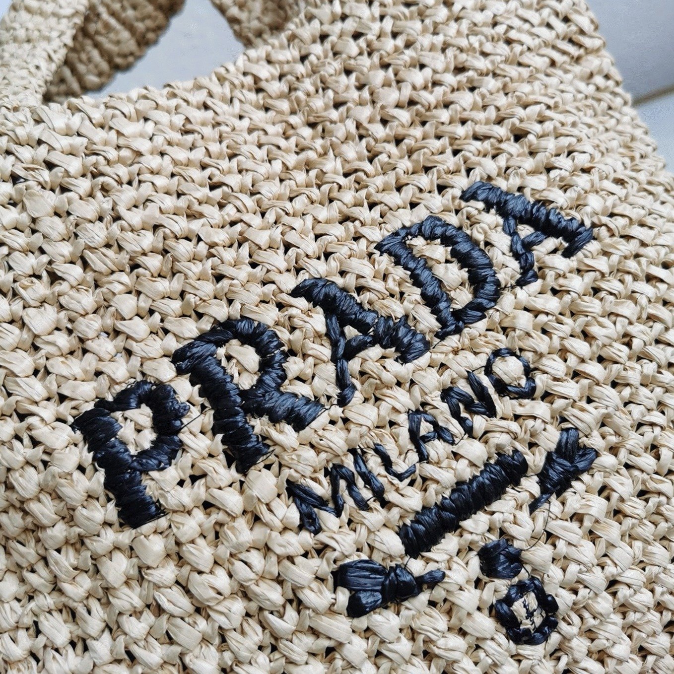 Prada Small Crochet Tote Bag Knockoff in Beige Raffia-effect Yarn