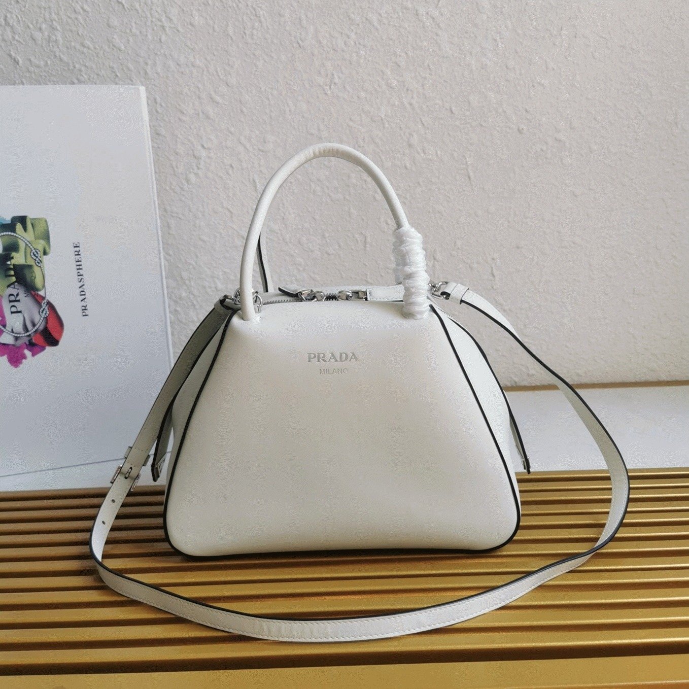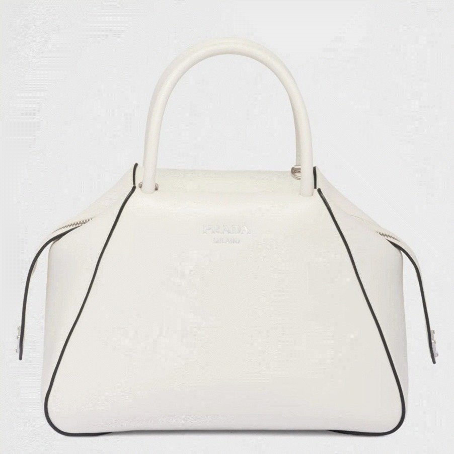 The Prada Supernova Bag made a remarkable impression during the brands Fall/Winter 2022 Womenswear Show, elegantly carried by models dressed in Pradas distinctive, fashion-forward looks. This medium-sized handbag, crafted from premium leather, is defined by its sleek, sculpted lines and a gracefully contoured zipper closure. With the signature enameled metal triangle logo, it effortlessly complements any occasion, whether day or night.