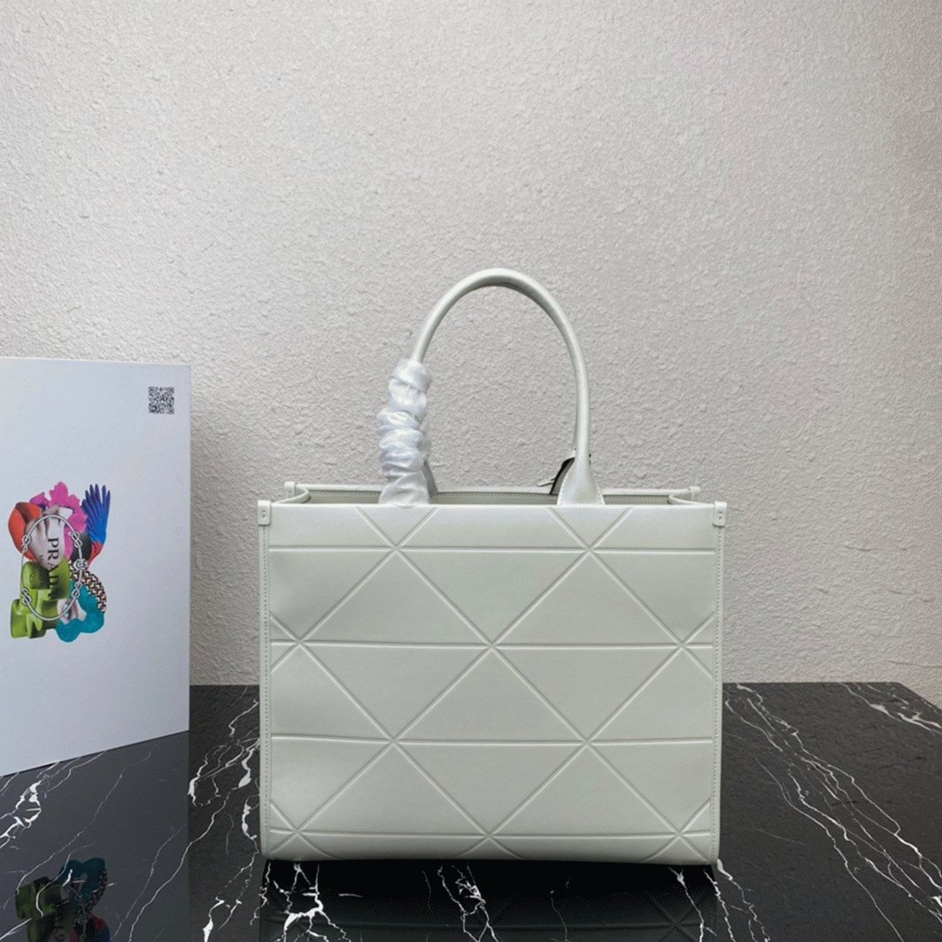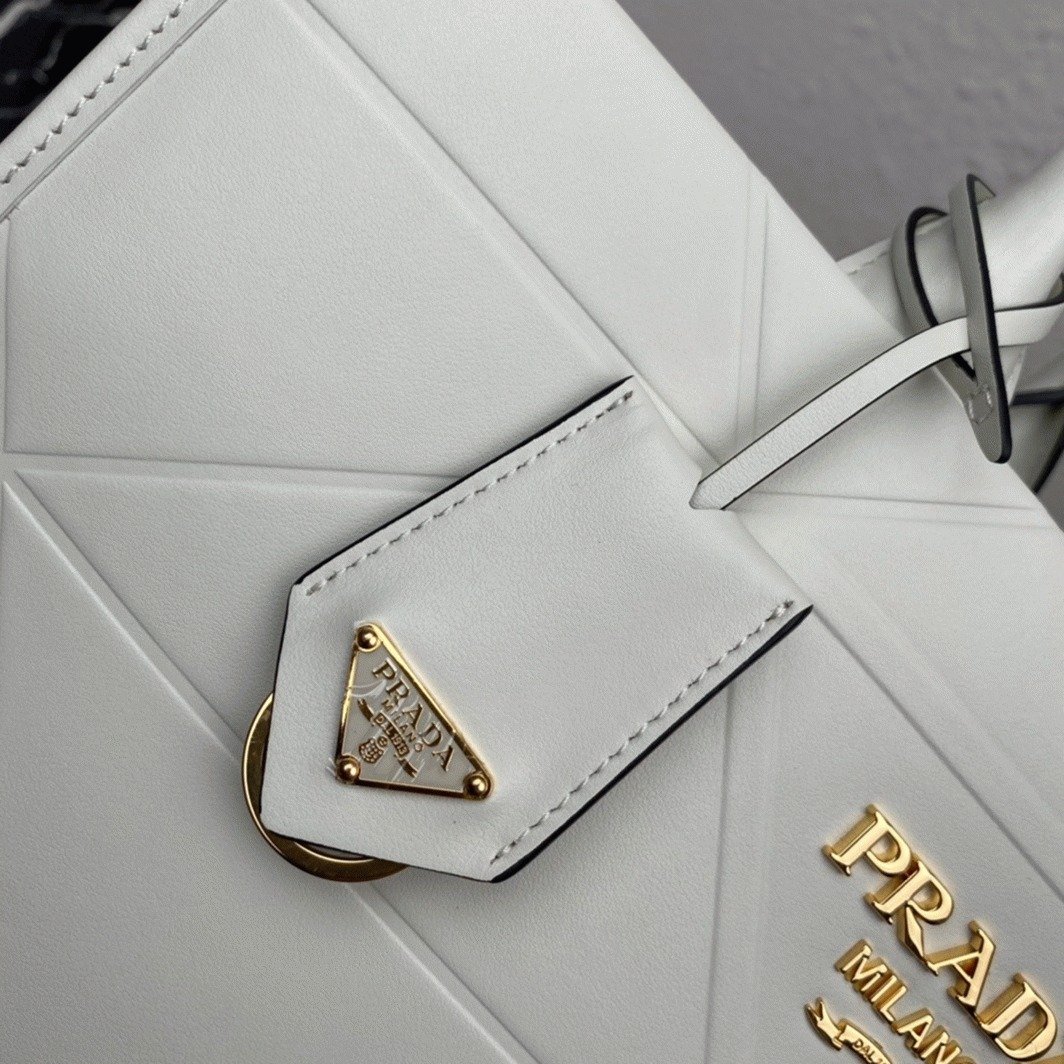 Prada Symbole Medium Bag Fake with Topstitching in White