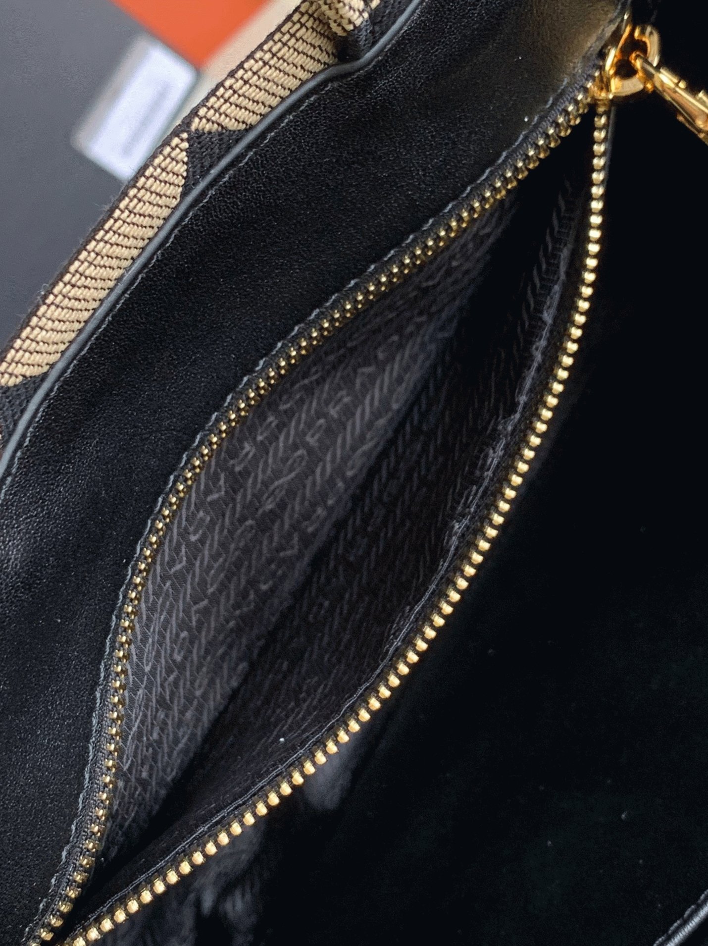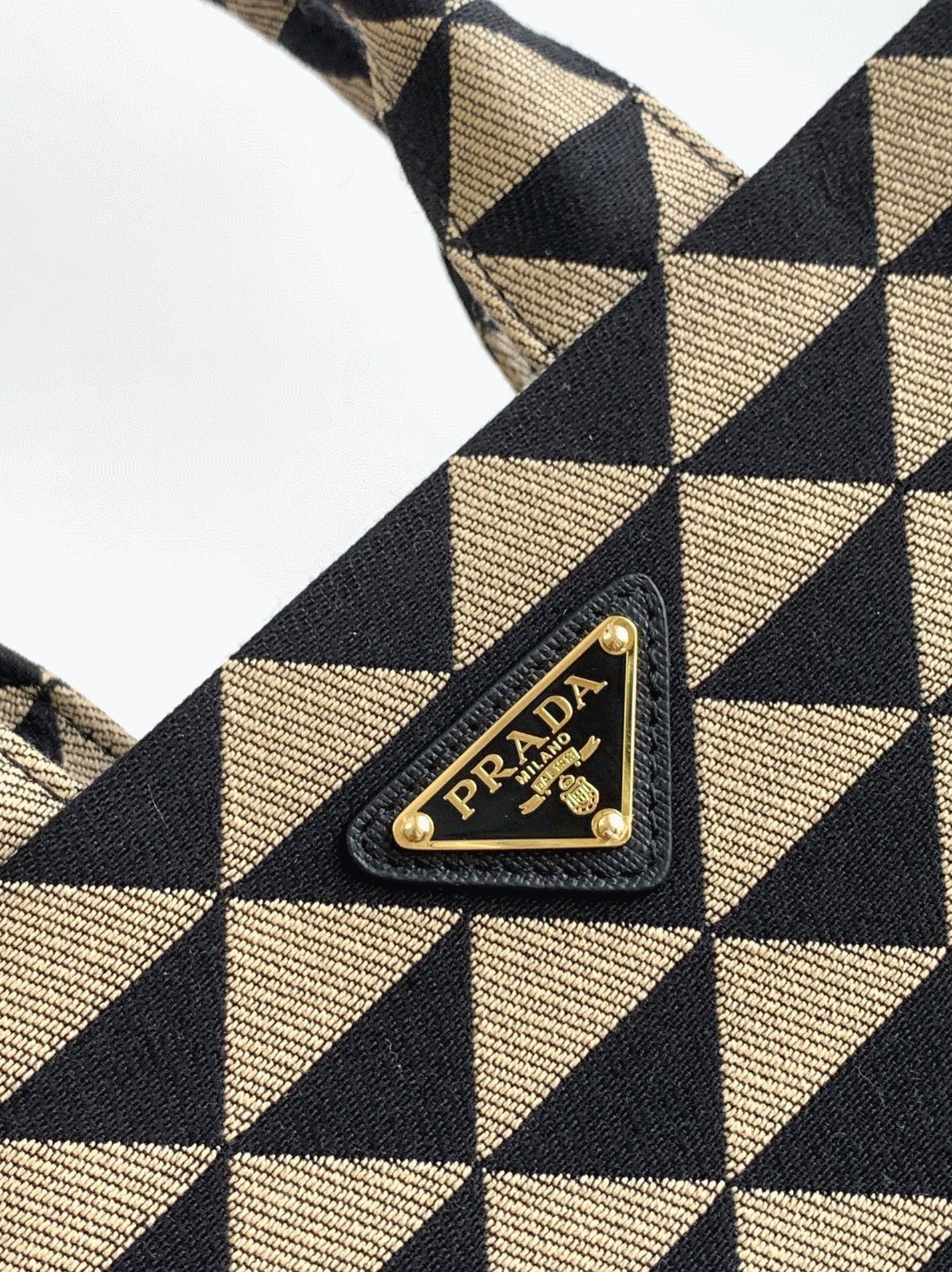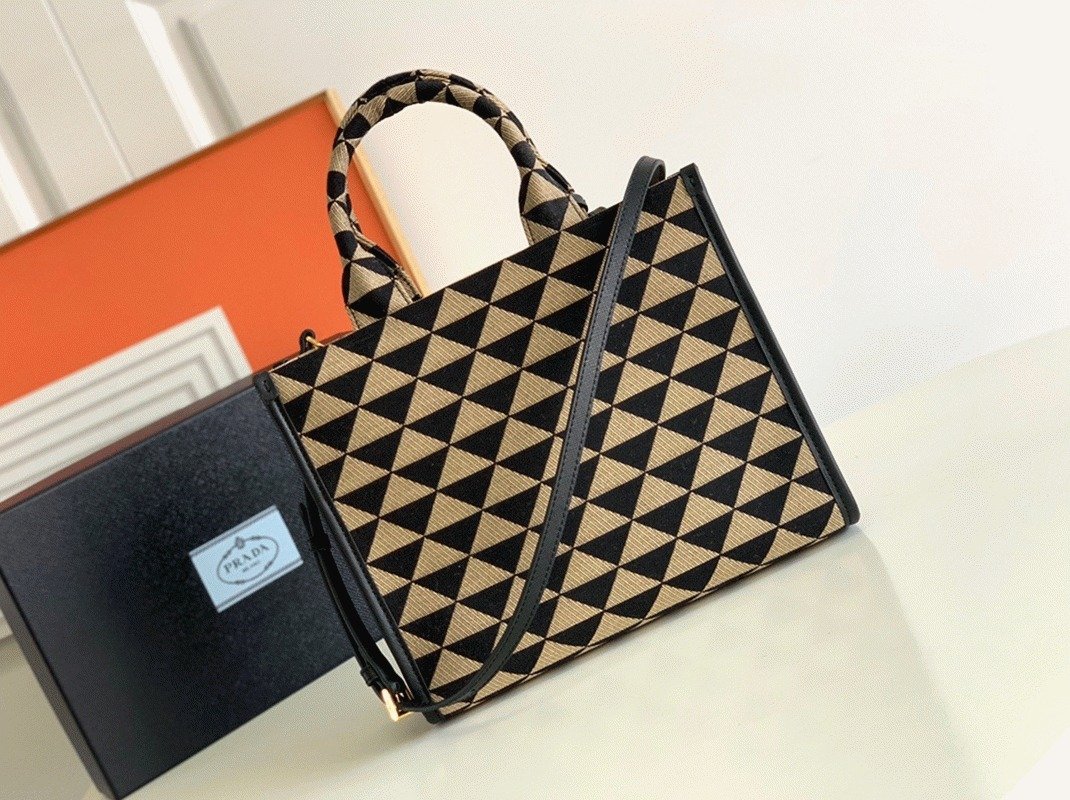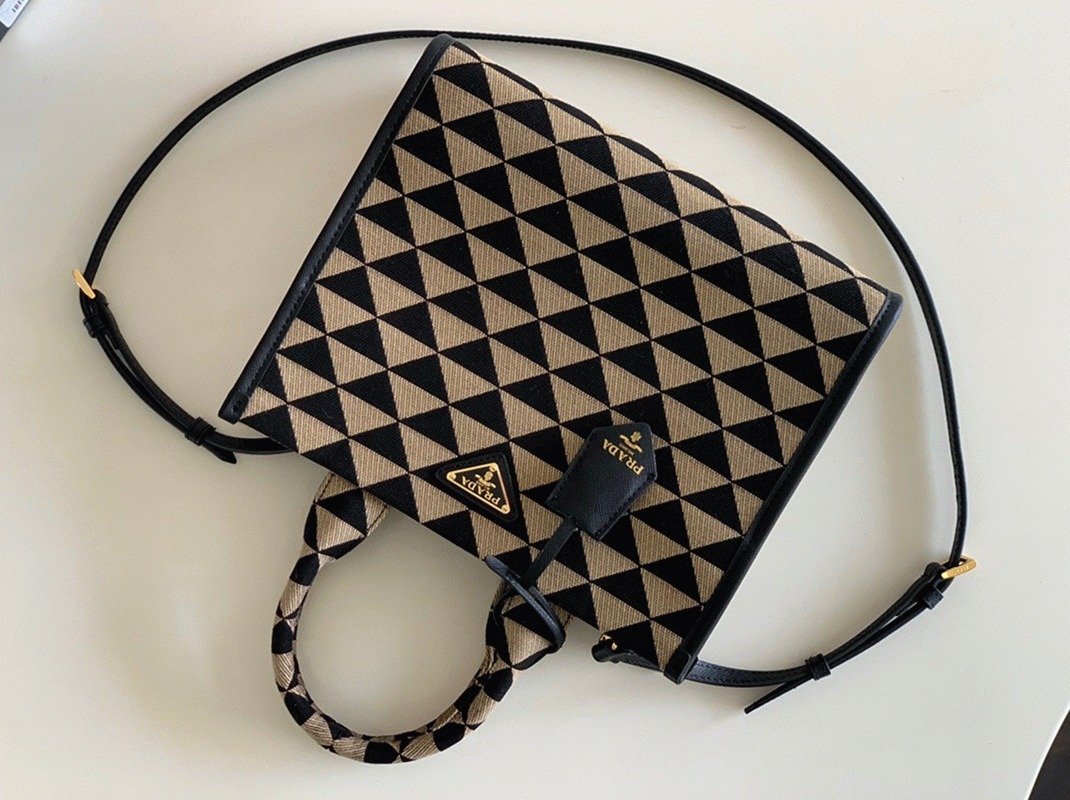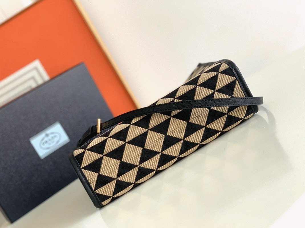 Prada Symbole Small Bag Replica in Black/Beige Jacquard Fabric