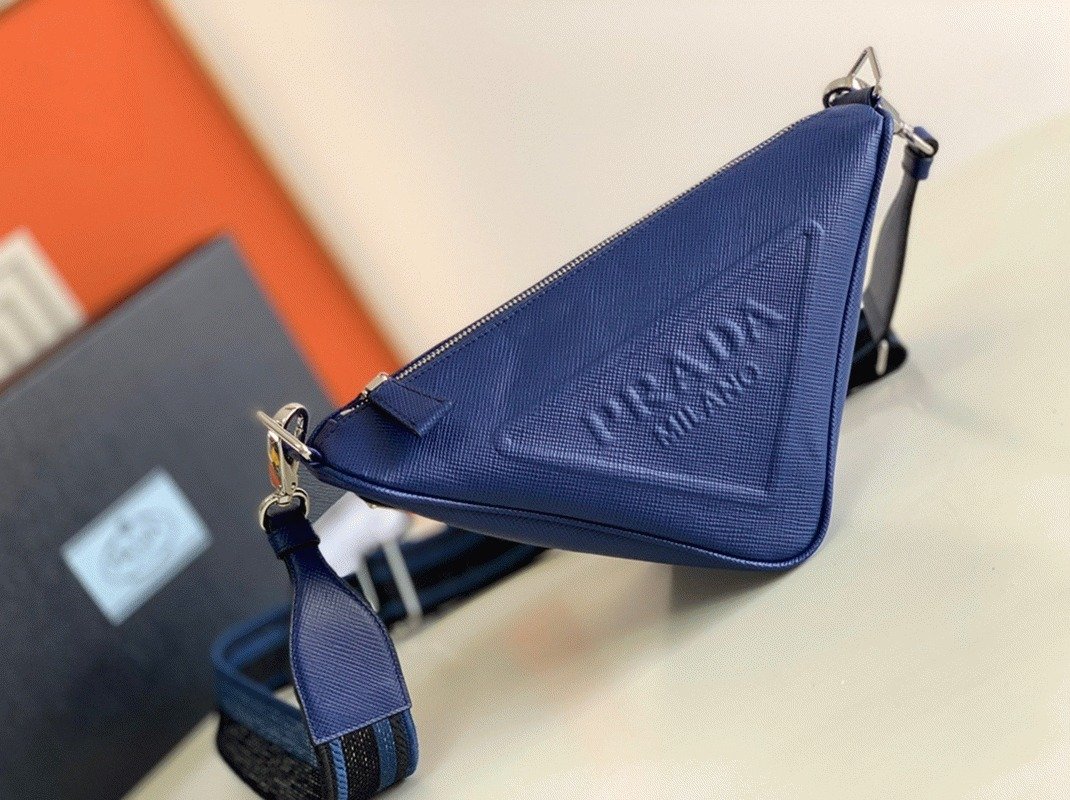 The iconic triangle continues to influence Pradas design narrative, inspiring new geometric details and modern interpretations of the brands classic style codes. This shoulder bag captures that spirit with its streamlined silhouette and adaptable form, made even more functional by an adjustable strap. The minimalist design is refined by a tonal embossed logo on the front and a signature enameled metal triangle logo on the back.