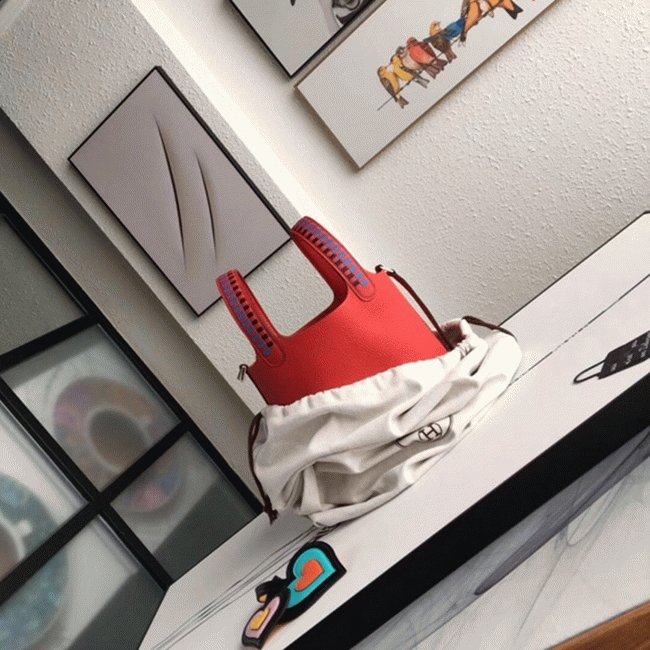 Red fake Hermes Picotin Lock 18cm handbag with braided handles