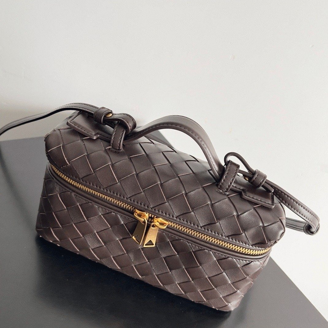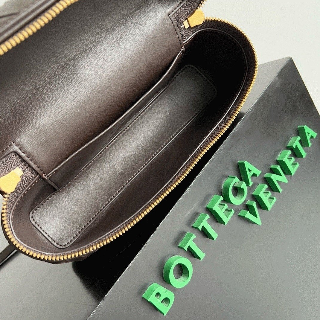 This Vanity Case Bag is crafted from soft leather strips using the brand’s iconic Intrecciato weaving technique. It is spacious enough to hold essentials like a phone, cardholder, and keys. The bag can be carried by its top handle or worn cross-body with the long detachable strap.