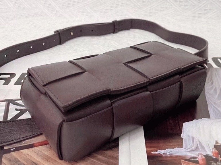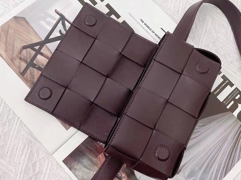 Bottega Veneta’s signature woven designs have been reimagined with a modern twist in their latest collection, which includes the Cassette bag and matching trousers. The classic Intrecciato weave has been transformed into a larger, boxier, and more structured form.