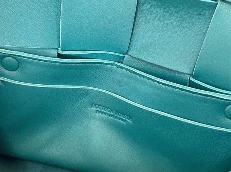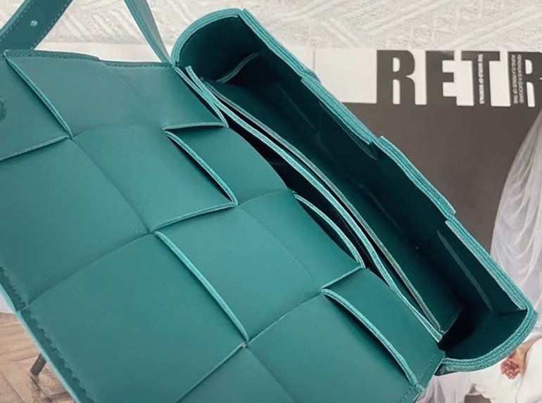 Bottega Veneta’s signature woven designs have been reimagined with a modern twist in their latest collection, which includes the Cassette bag and matching trousers. The classic Intrecciato weave has been transformed into a larger, boxier, and more structured form.
