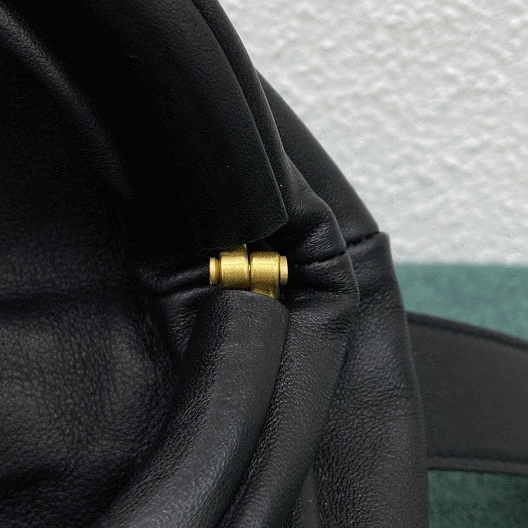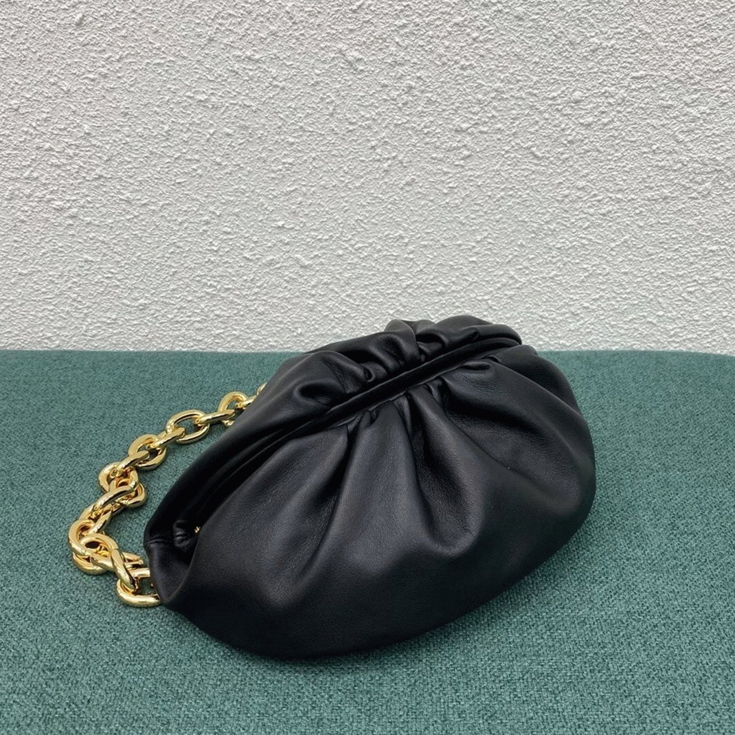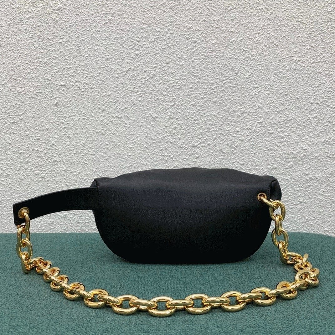 The Pouch clutch was Daniel Lee’s first design for Bottega Veneta, translating the brand’s iconic cloud-like shape into a more practical, hands-free style. This bum bag is made from nappa leather and wraps around the waist with a gold-tone chain. The top features a ruched frame that opens with a hinge for easy access.