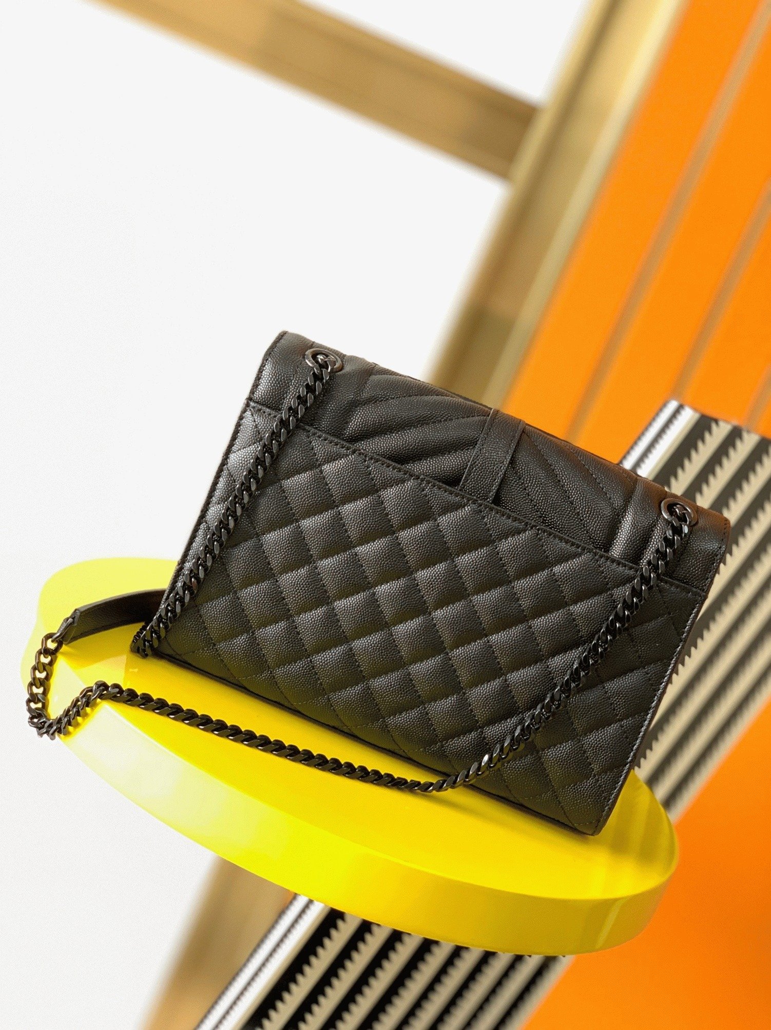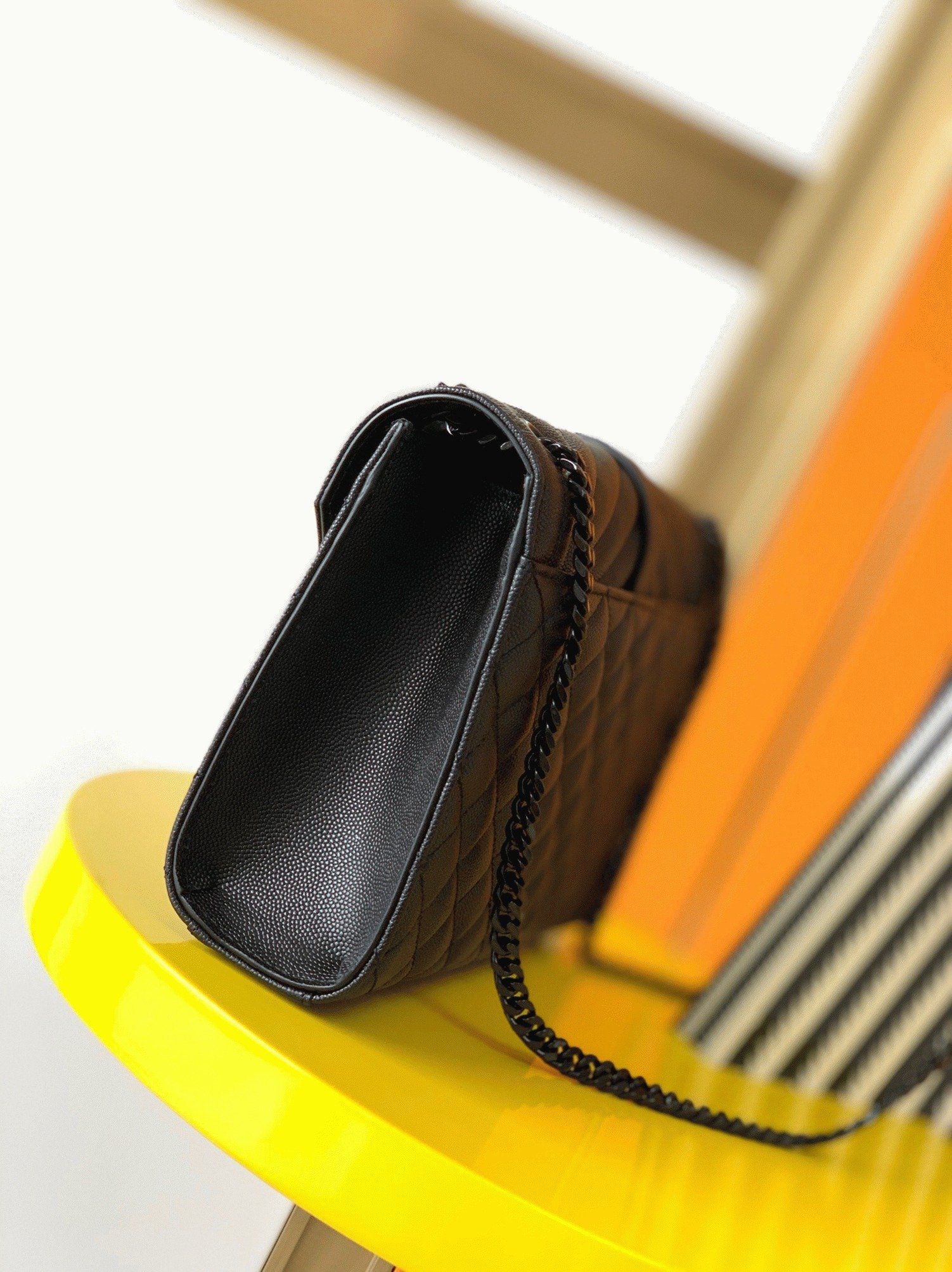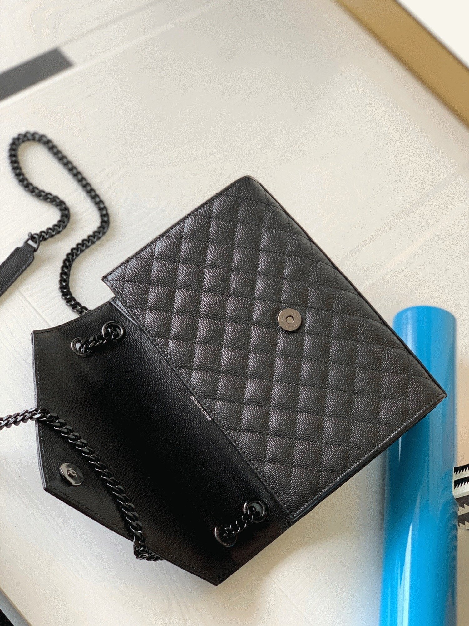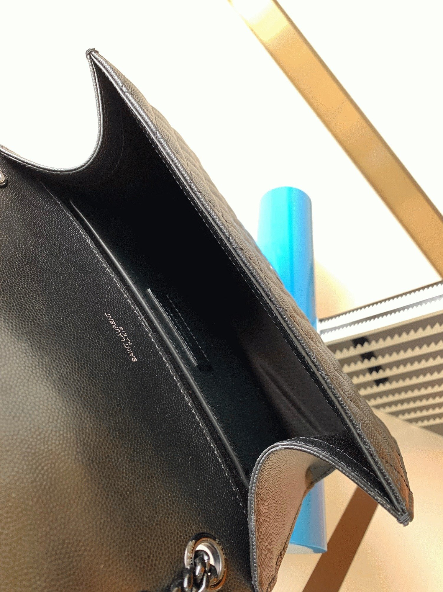 Front flap decorated with YSL initials in metal