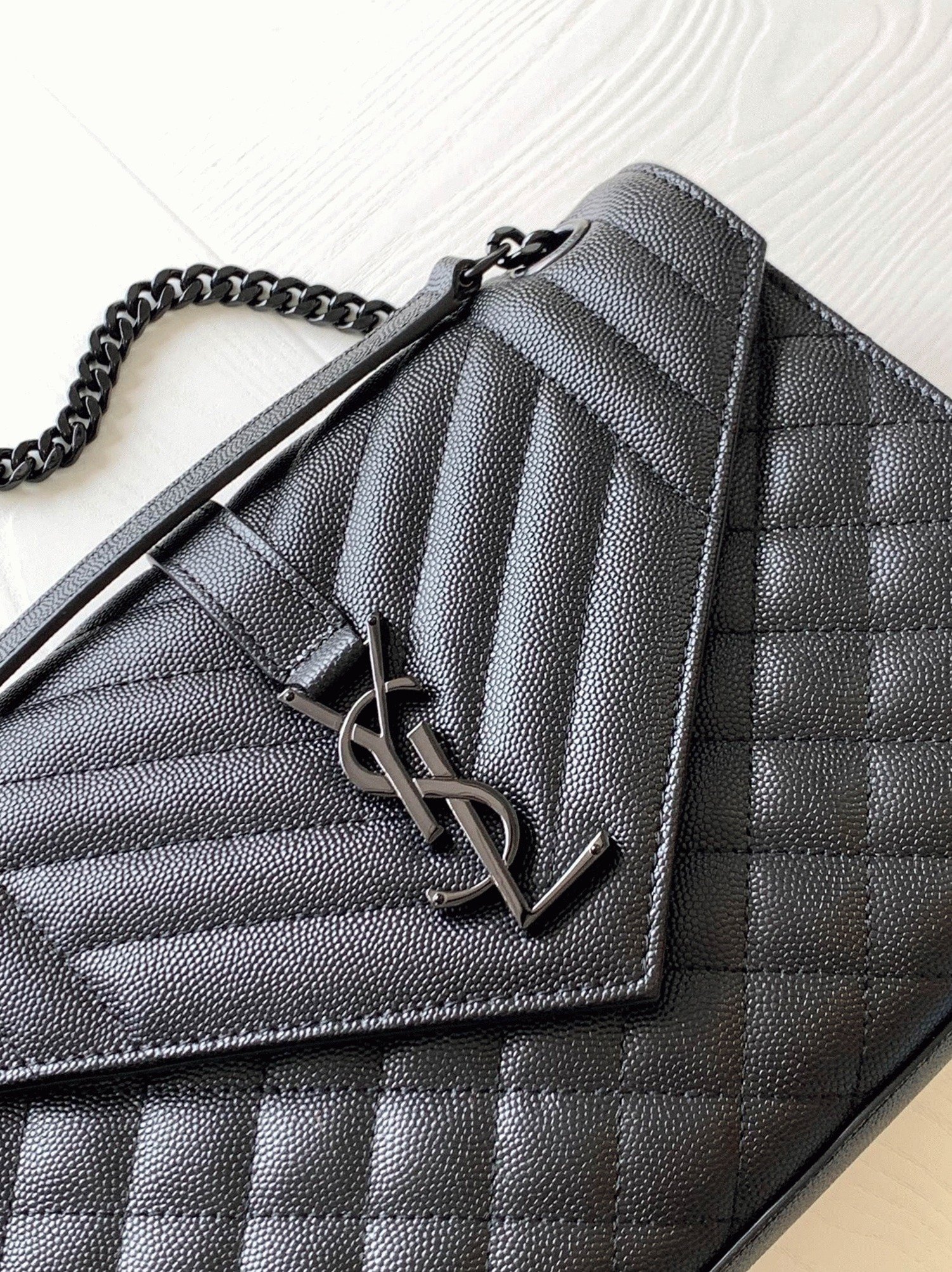 Replica Saint Laurent Envelope Large Black Bag with Black Hardware