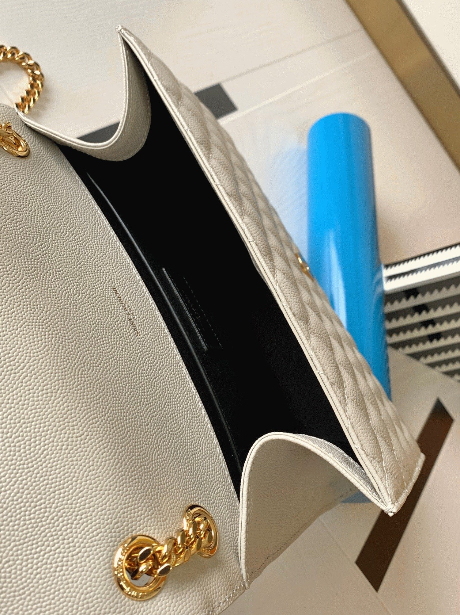 Front flap adorned with metal YSL initials
