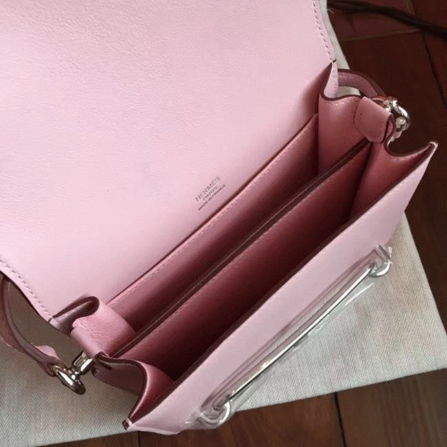 Rose dragee replica Hermes Mini Sac Roulis handbag