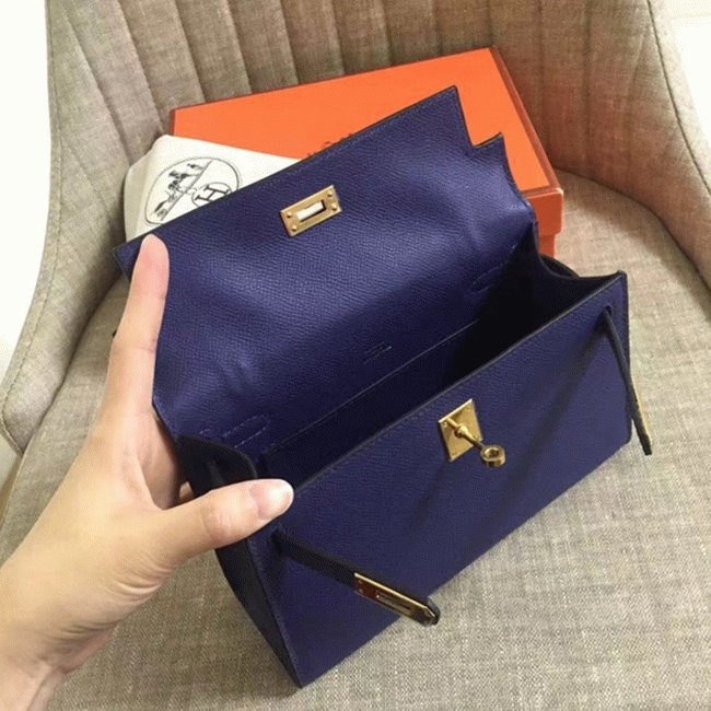 Sapphire Epsom Top Fake Hermes Kelly Pochette Deep Blue Clutch