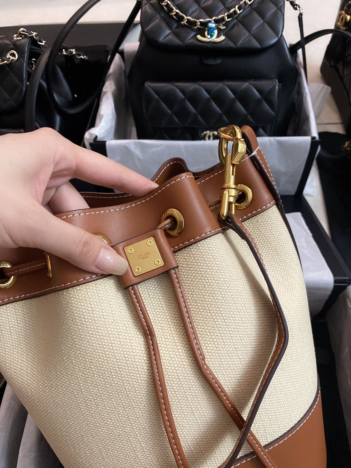 Small drawstring cabas marin in TEXTILE AND CALFSKIN