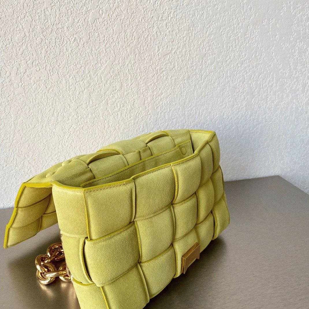 The Chain Cassette shoulder bags are meticulously handcrafted in a bold, exaggerated version of Bottega Veneta’s iconic intrecciato weave. These bags pay homage to the past while perfectly capturing the present moment. The golden chain hardware is crafted with precision, polished for a flawless finish, then galvanized and treated with hypoallergenic coatings for added durability.
