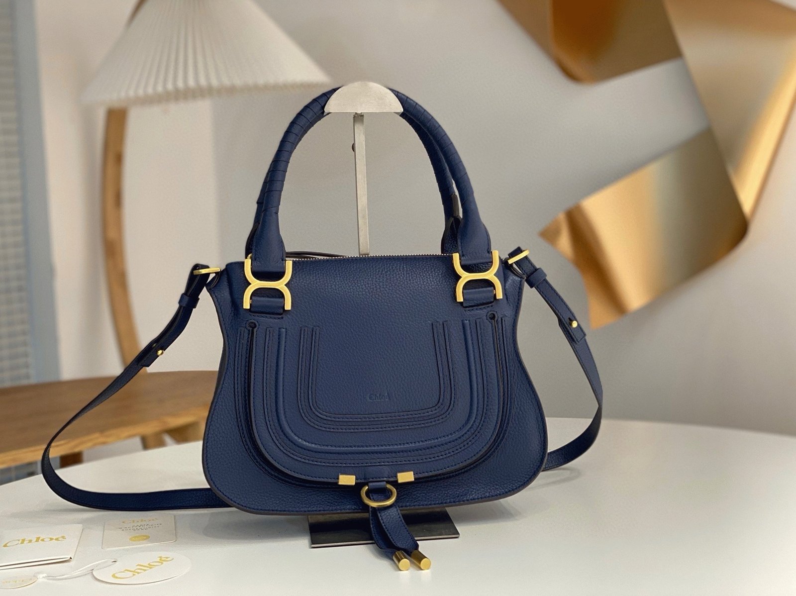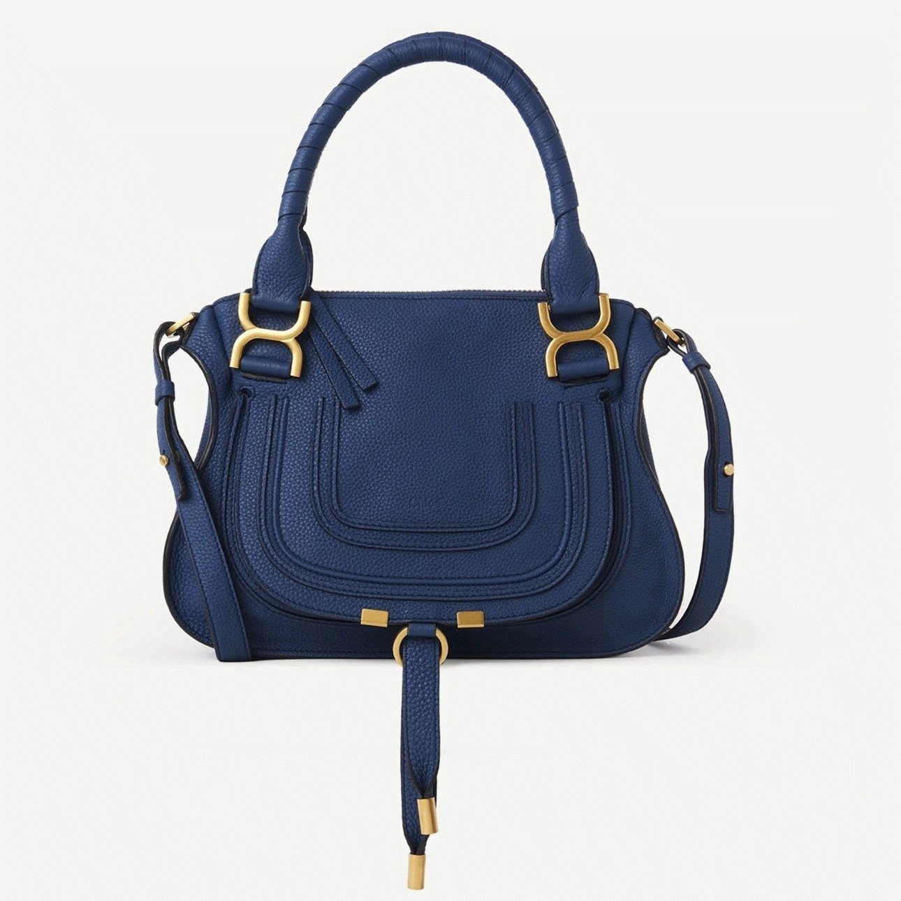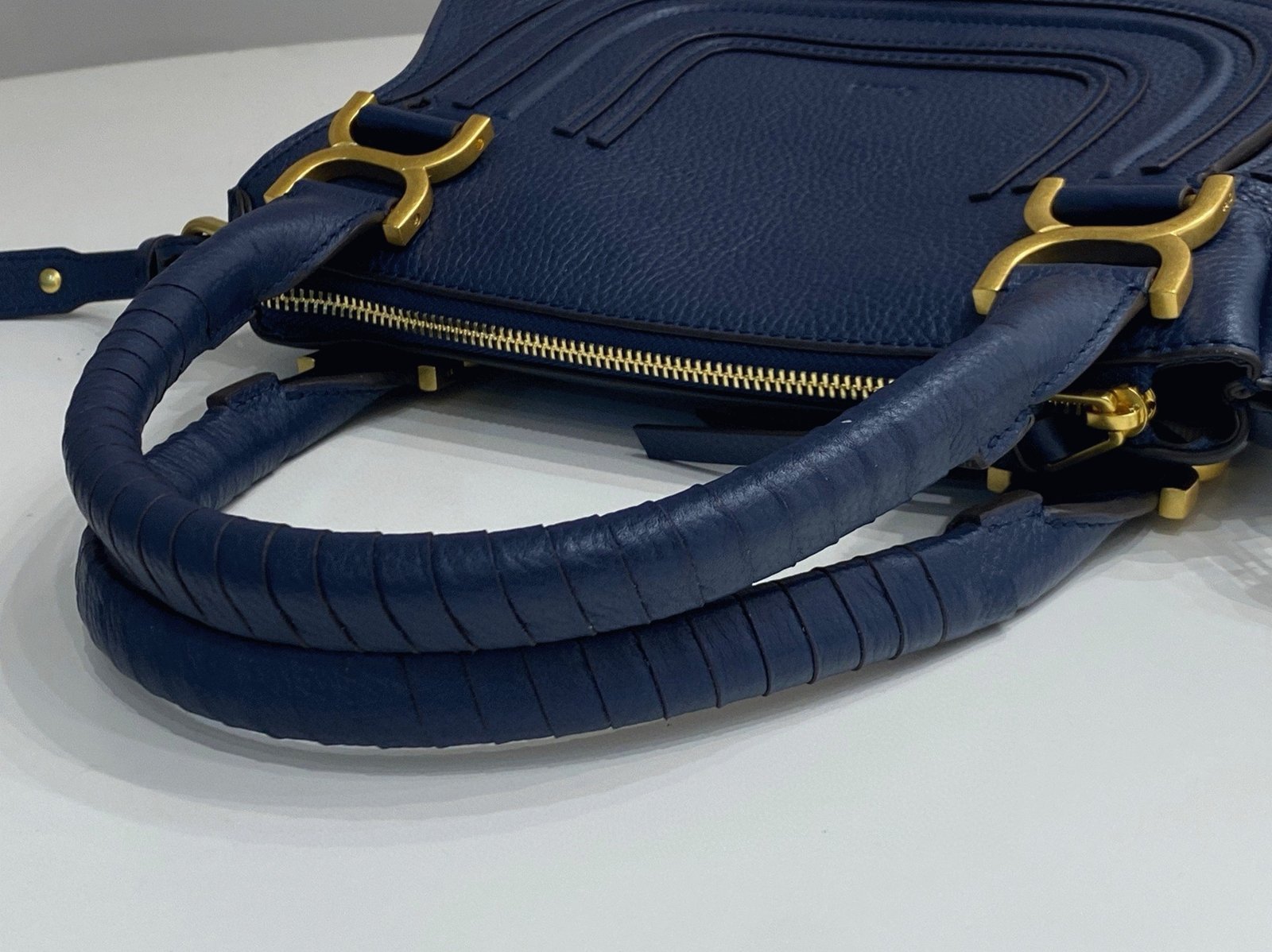 Top Quality Fake Chloe Marcie Small Double Carry Bag in Blue Grained Leather