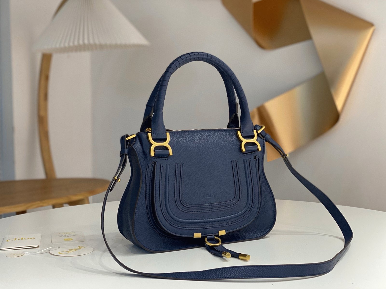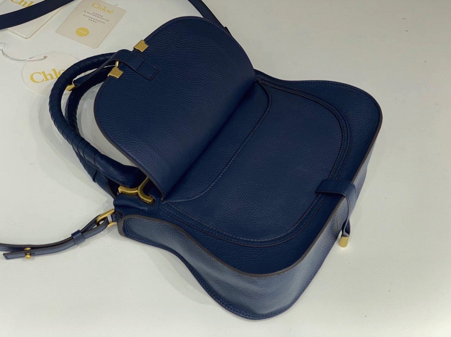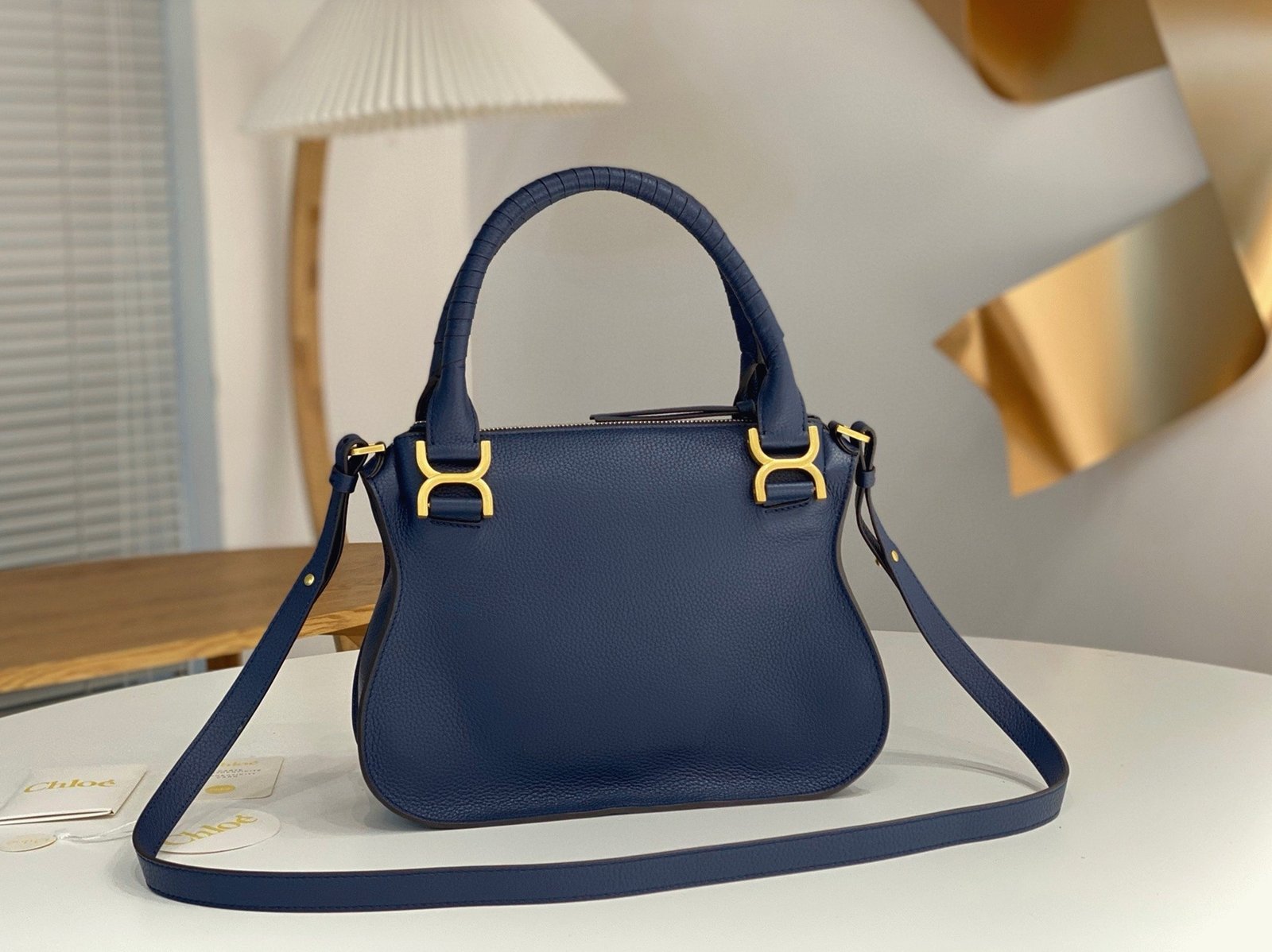 Top Quality Fake Chloe Marcie Small Double Carry Bag in Blue Grained Leather