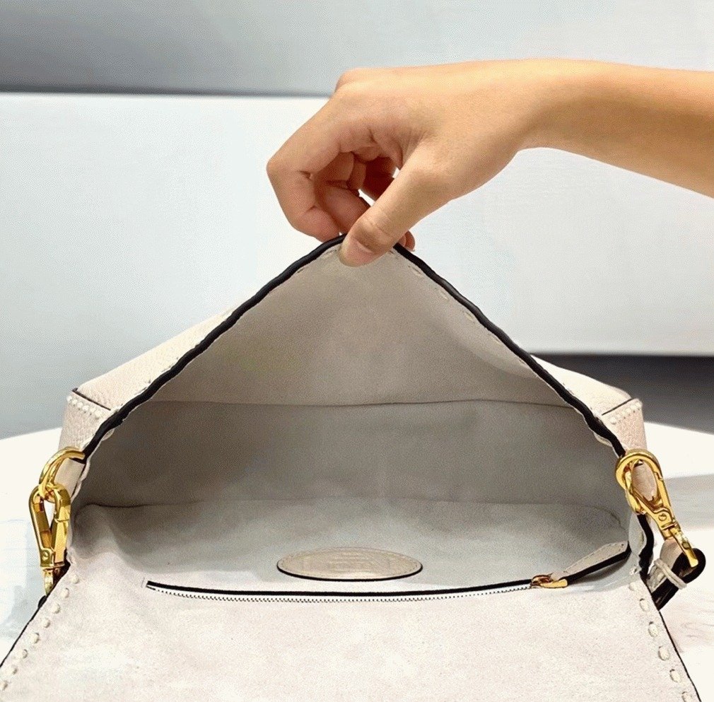 Detailed with macro hand stitching and adorned with an FF clasp