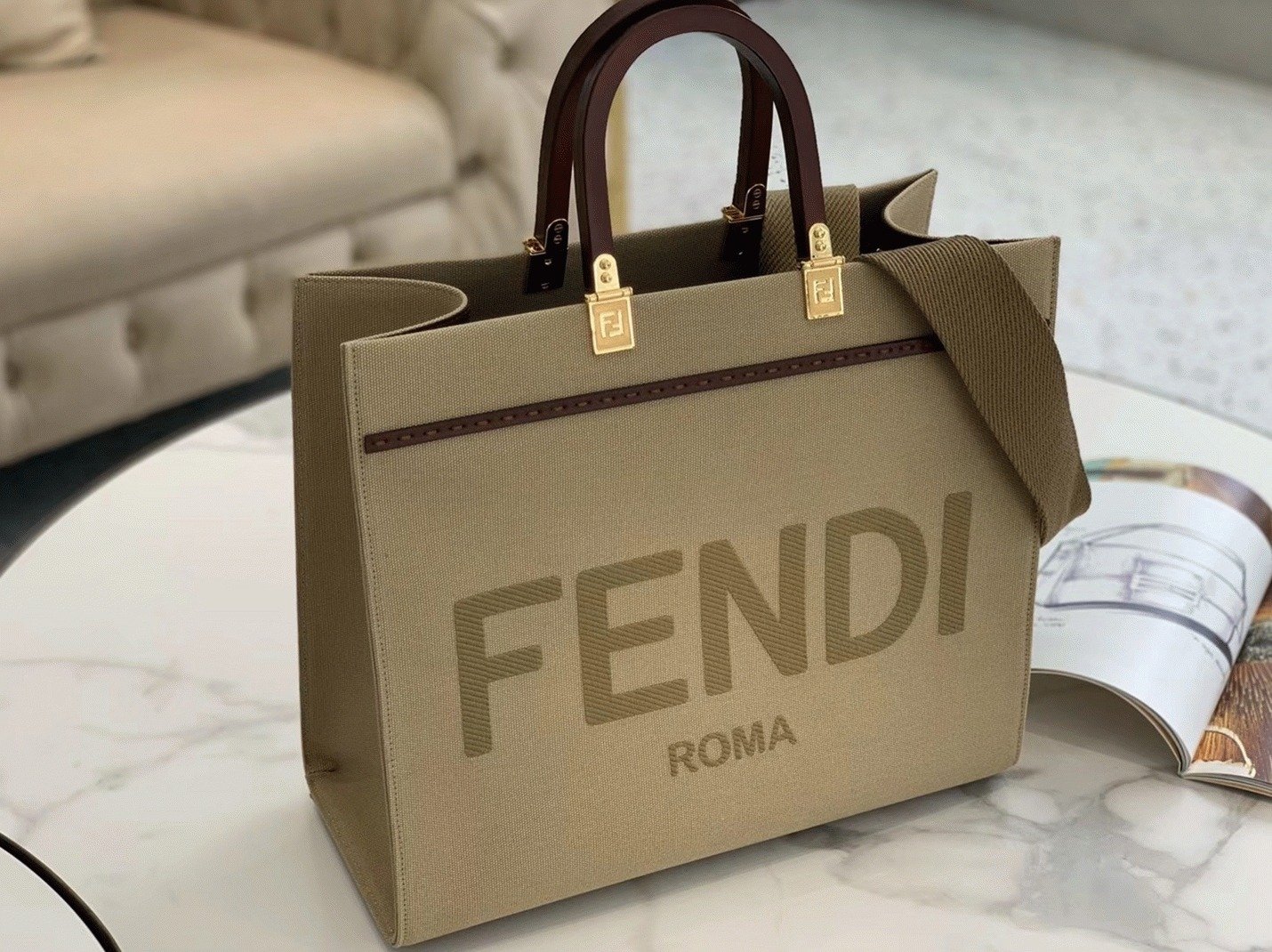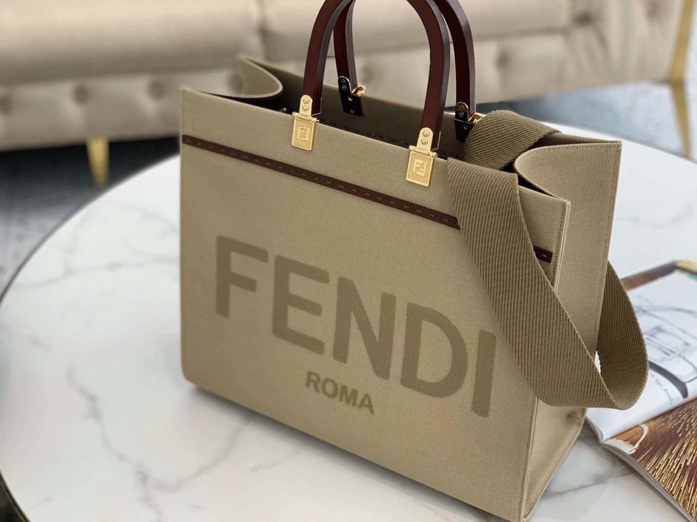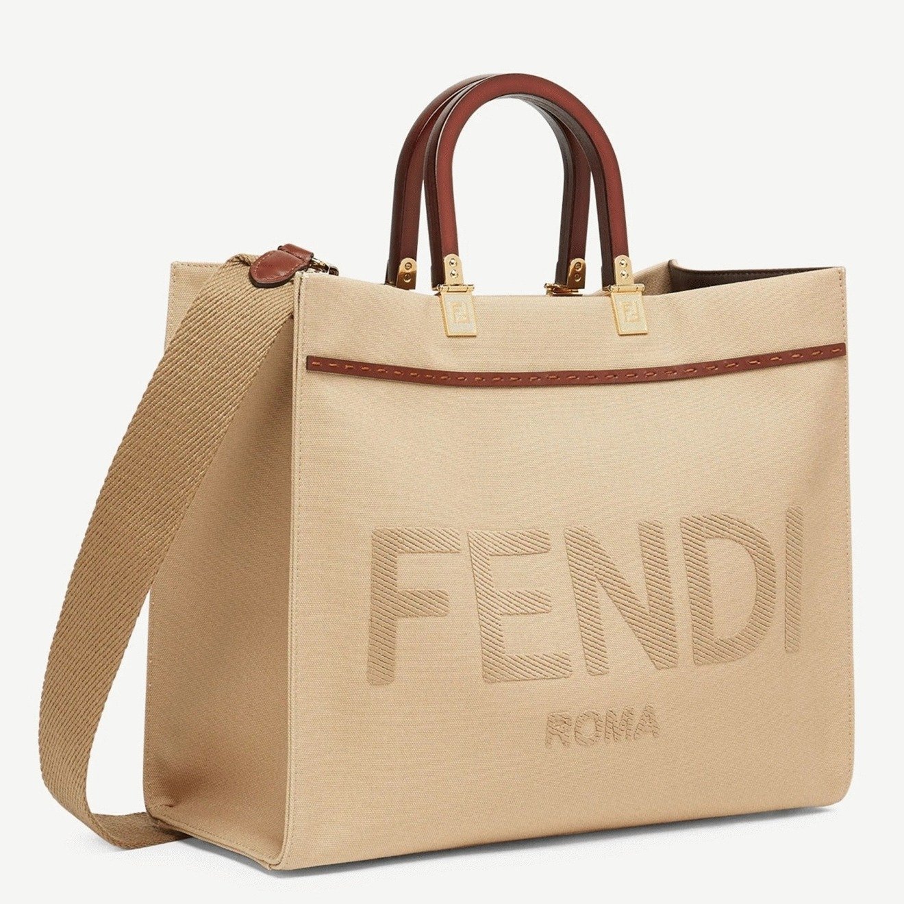 Top Quality Fake Fendi Sunshine Medium Tote Bag In Beige Canvas