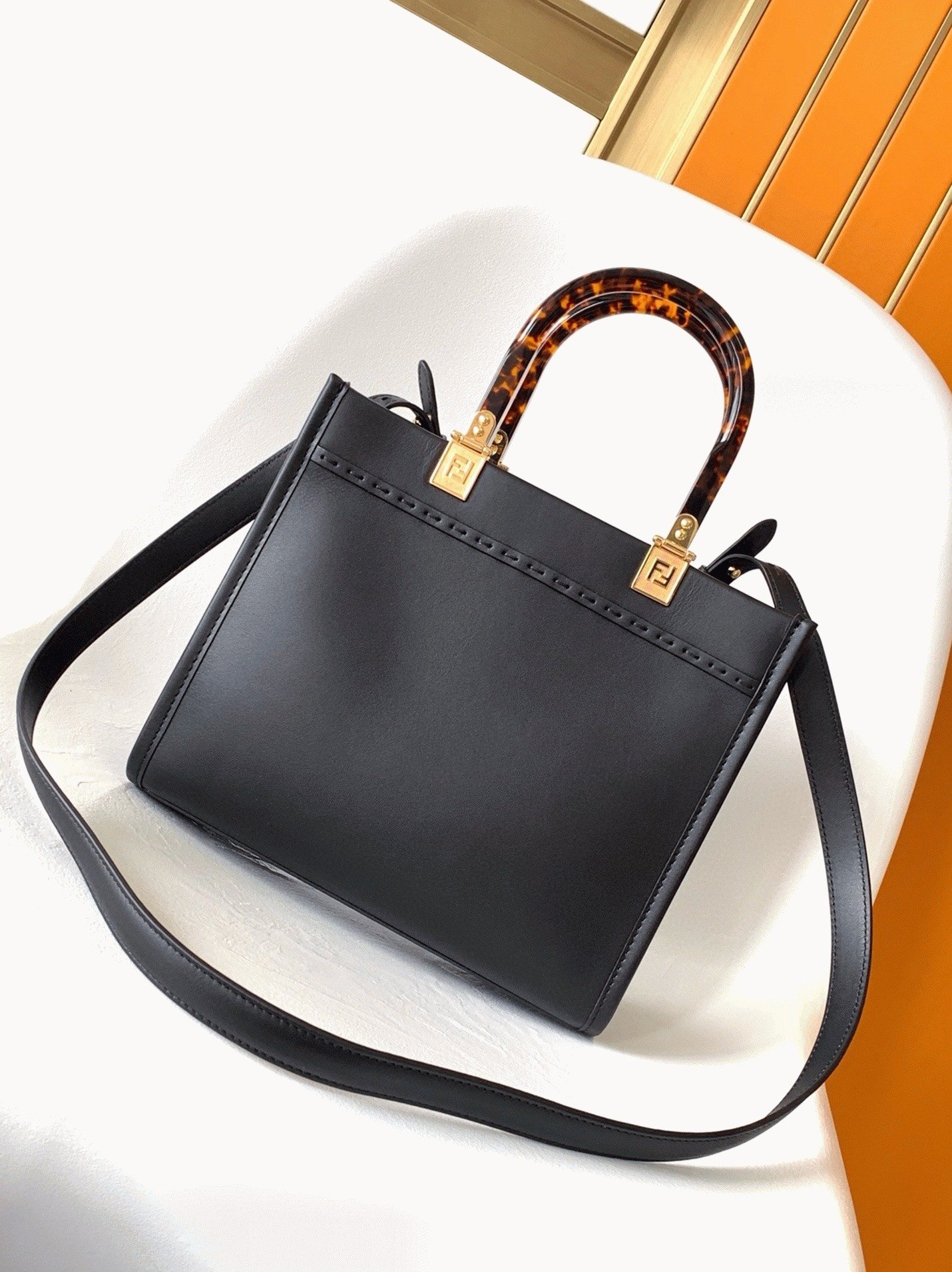 Top Quality Fake Fendi Sunshine Medium Tote Bag In Black Calfskin