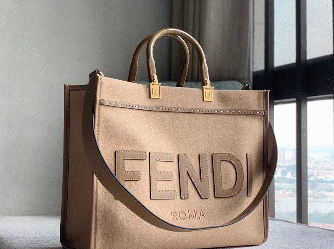 Top Quality Fake Fendi Sunshine Medium Tote Bag In Brown Flannel