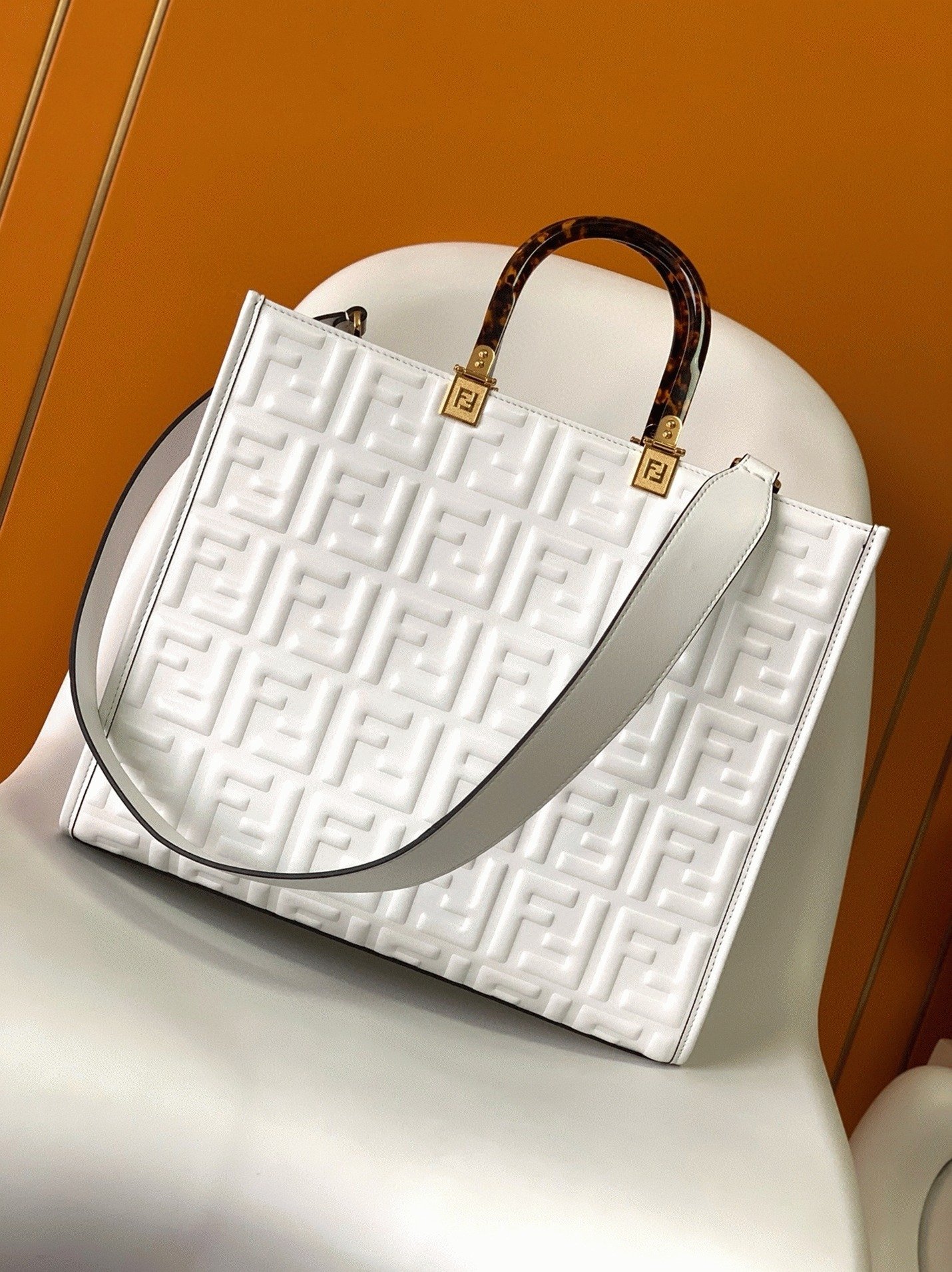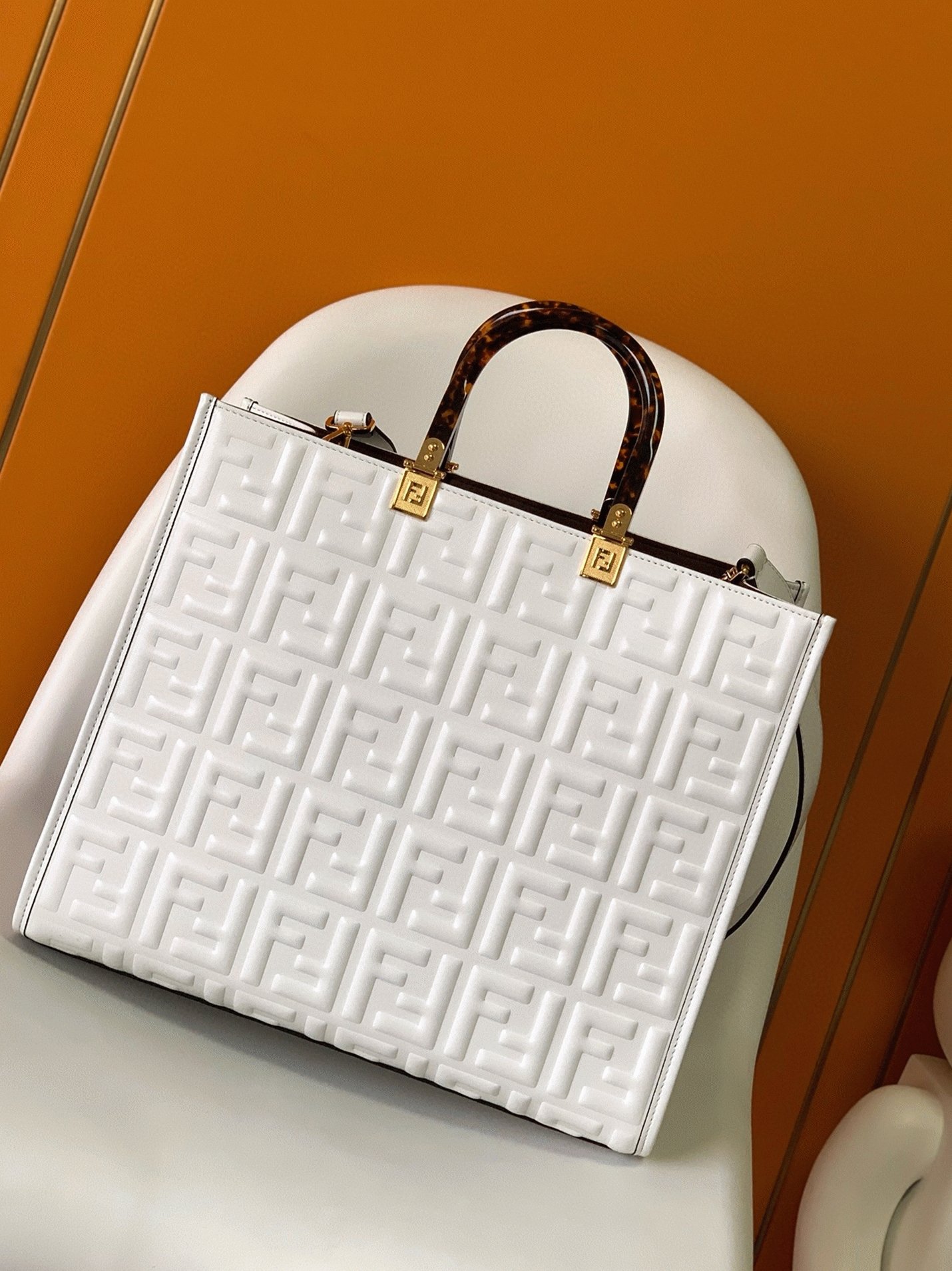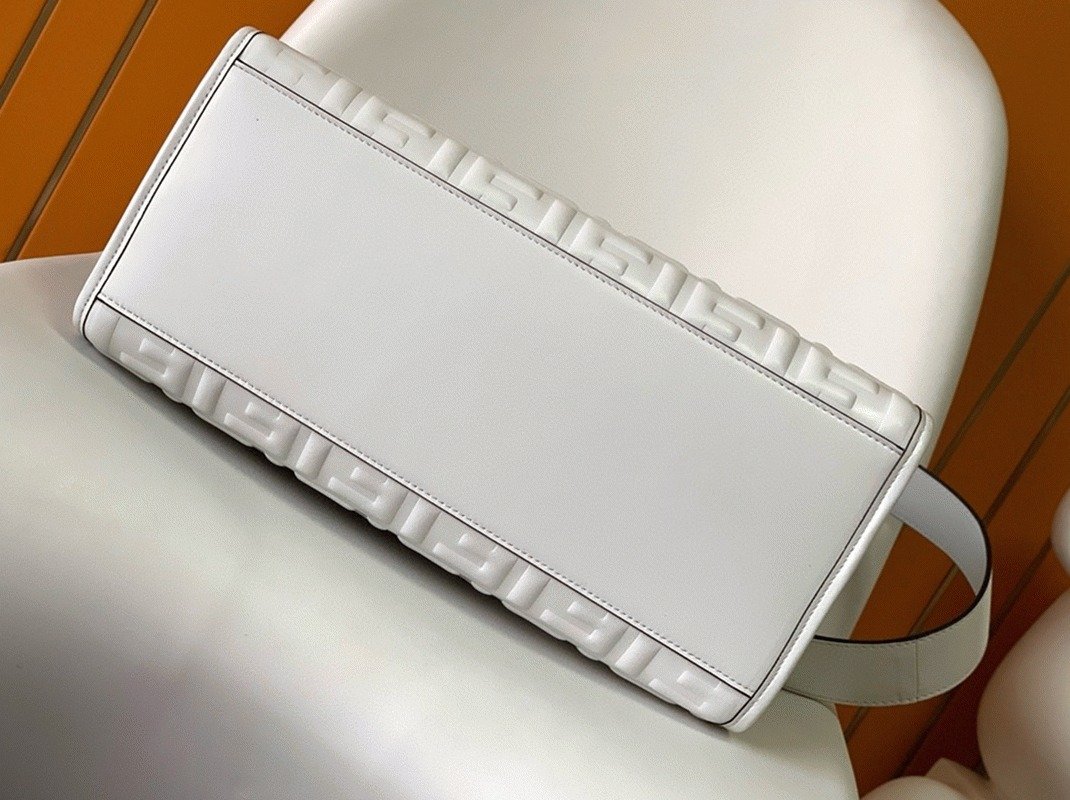 Top Quality Fake Fendi Sunshine Medium Tote Bag In White FF Calfskin
