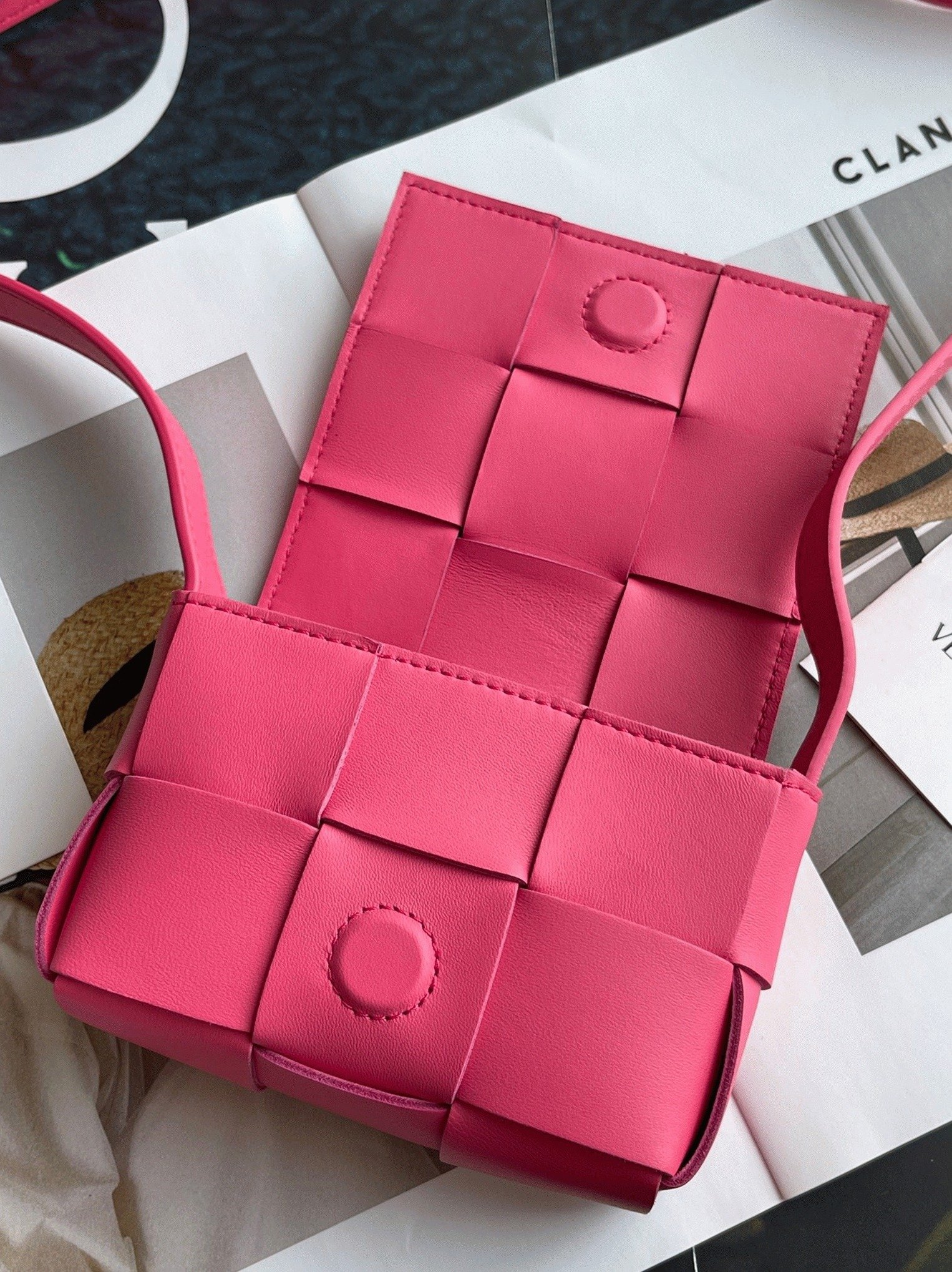 Bottega Veneta’s iconic intrecciato weave is an age-old design, yet the brand continually adds modern twists, like the mini Cassette bag. Made from lambskin, this cross-body bag features an oversized interlace that gives it a solid structure. It closes with a magnetic clasp and comes with an adjustable leather strap. The interior subtly displays an engraved brand.