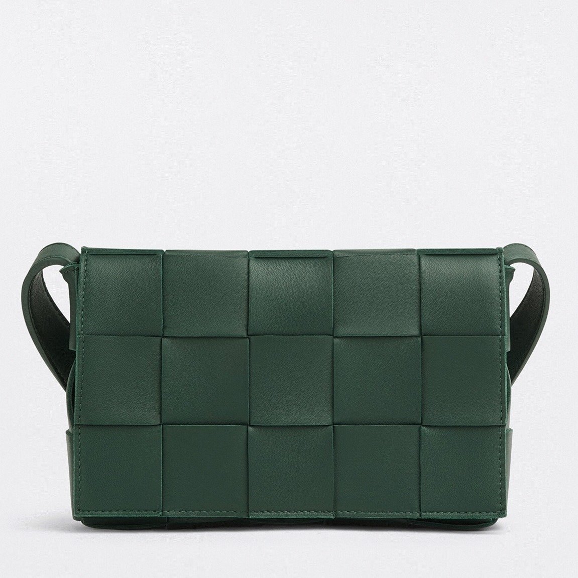 Bottega Veneta’s signature intrecciato weave is an age-old design, yet the brand continues to reinvent it, as seen in the Cassette Bag. This cross-body bag is made from smooth lambskin and features an oversized interlace for structure. It closes with a magnetic clasp and is carried by an adjustable leather strap. The interior discreetly displays the engraved brand.