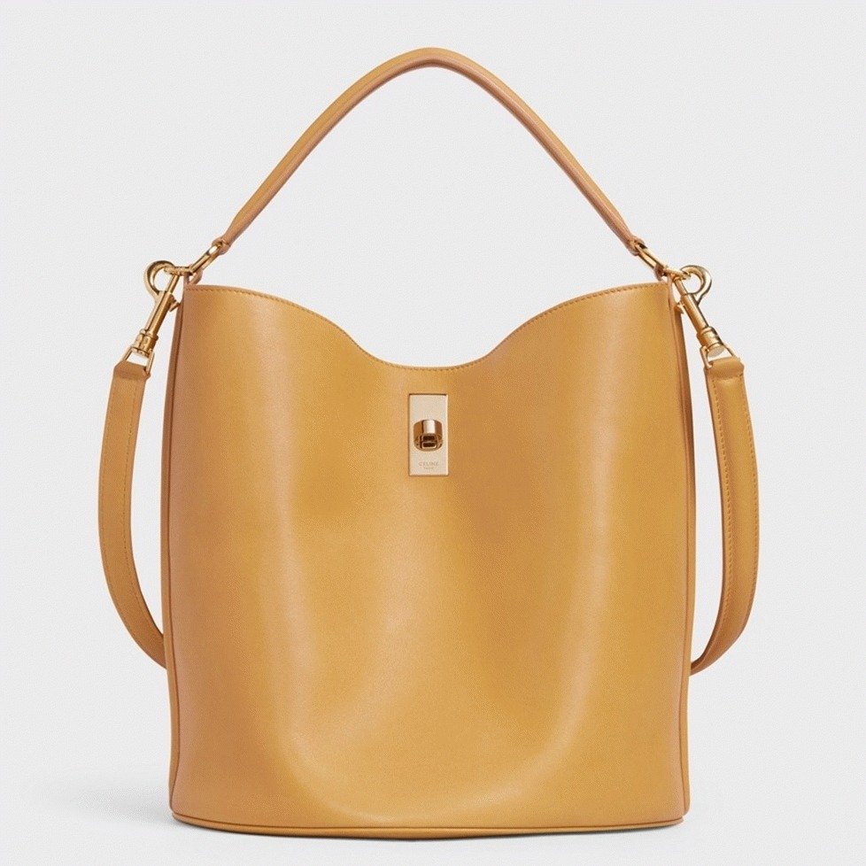 Besides the well-known Celine 16 turnlock design, the Bucket Bag offers a fresh take with a softer, more casual shape that appeals to those who prefer something different from the structured 16 line. This elegant yet straightforward bucket bag combines style and practicality, making it an ideal size for everyday use.