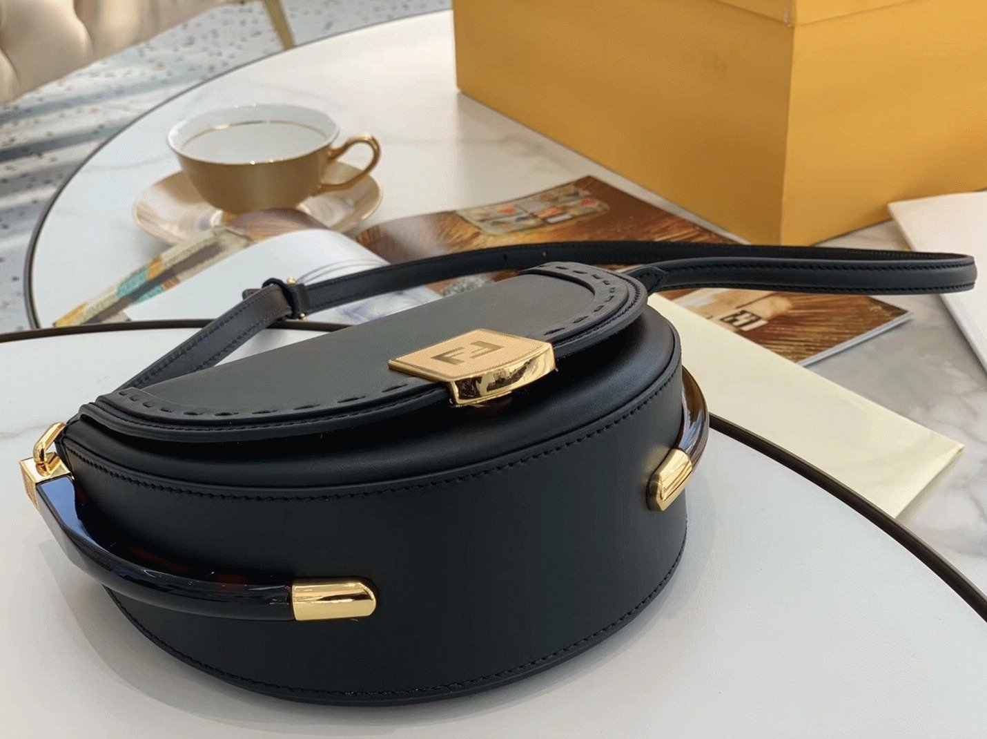 Top Quality Replica Fendi Moonlight Saddle Bag In Black Calfskin