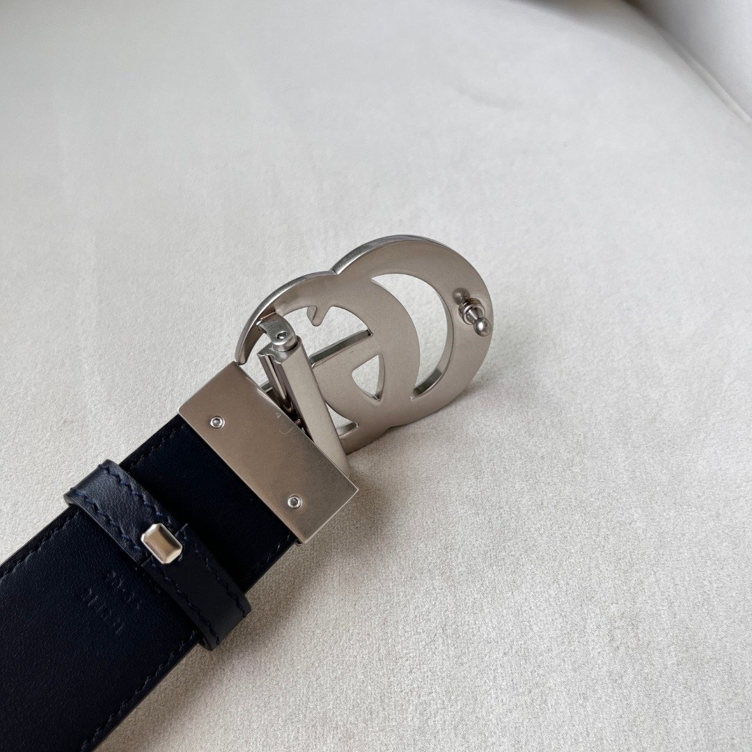 WIDE LEATHER BELT WITH DOUBLE G BUCKLE