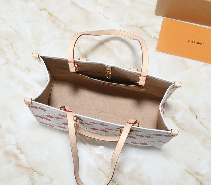X TM Monogram Cherry Canvas Onthego MM In White Style 1